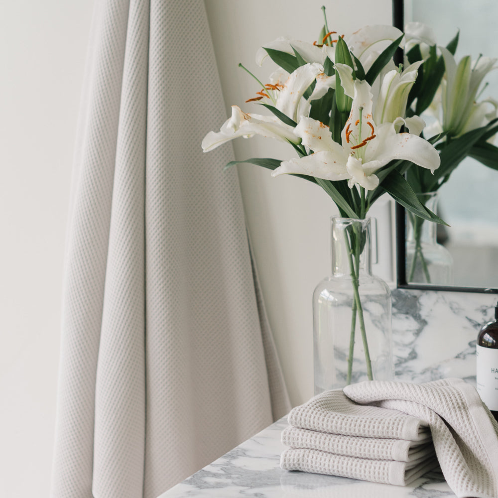 For a complete set, pair these bath sheets with the Waffle Bath Towels, Waffle Hand Towels, and Waffle Washcloths (each sold separately).