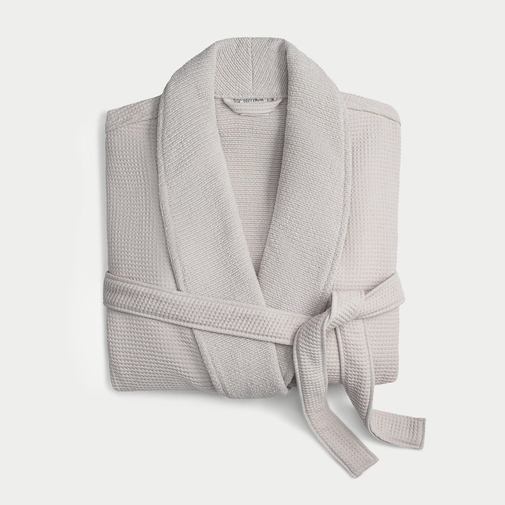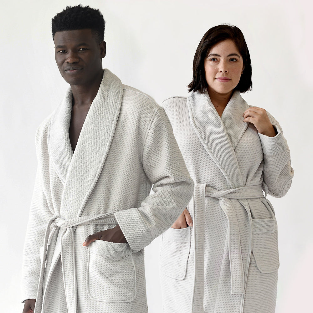 Wrap yourself in spa-like luxury with the Waffle Bathrobe. Featuring dual-sided texture, the ultra-absorbent outer waffle weave is balanced out by the inner softness of ribbed terry. This robe is sure to be your new favorite part of getting ready.