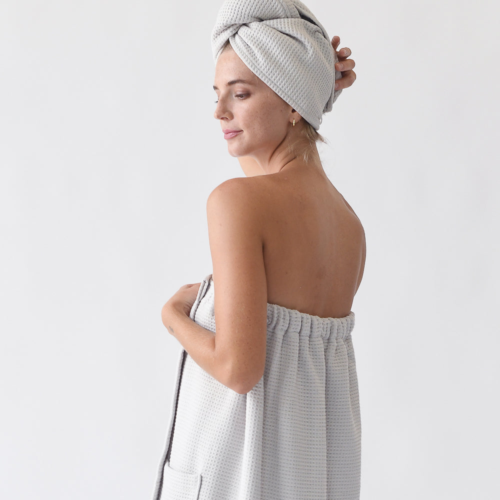 Elevate your post-shower routine with the Waffle Hair Towel. This hair wrap helps dry your hair and keeps it out of your face while getting ready, making it a convenient companion for your mornings.