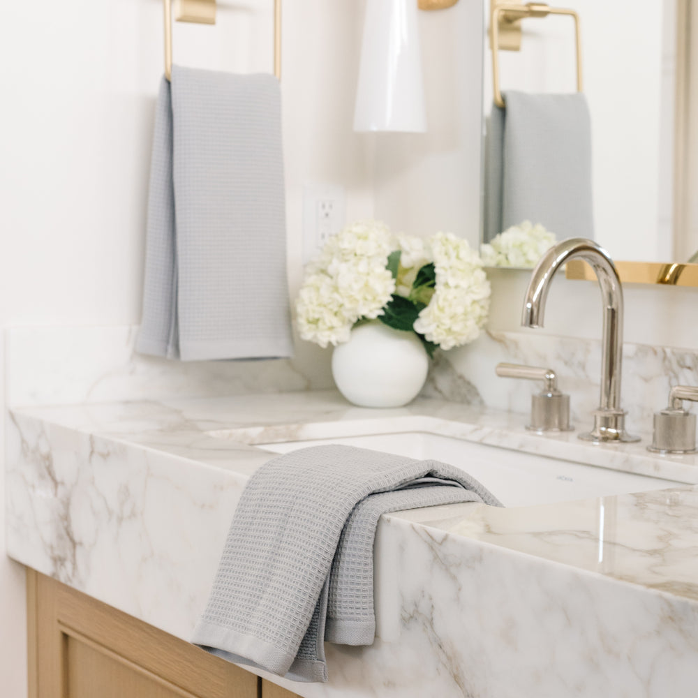 Pretty meets practical with these dual-sided Waffle Hand Towels. They feature a textured mini waffle weave and plush, soft ribbed terry for a fresh dimensional look that enhances any bathroom aesthetic. Soft and stylish, these towels feel luxurious on your skin and look even better hung in your bathroom.