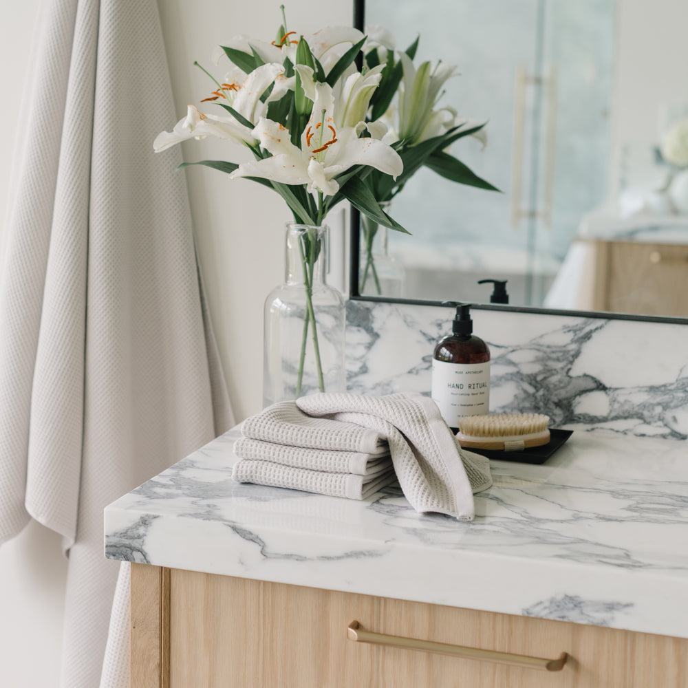 A beautiful balance of mini waffle weave and plush yet absorbent ribbed terry come together in these dual-sided washcloths. Soft and stylish, they feel luxurious on your skin and look even better in your bathroom. Use the terry side to dry, and display the waffle side to add a touch of texture to any space.
