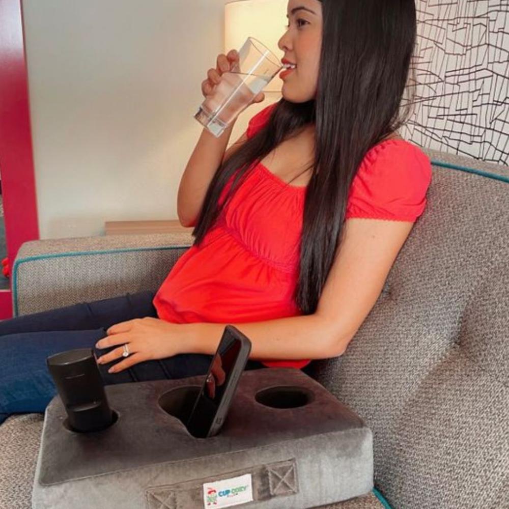 This Cup Holder Pillow is designed to keep your drinks close and safe from spills. With adaptable foam that fits almost any cup or mug, it insulates drinks to keep them hot or cold longer. The removable, washable cover makes it easy to clean, so you can use it anywhere—from the couch to the car.