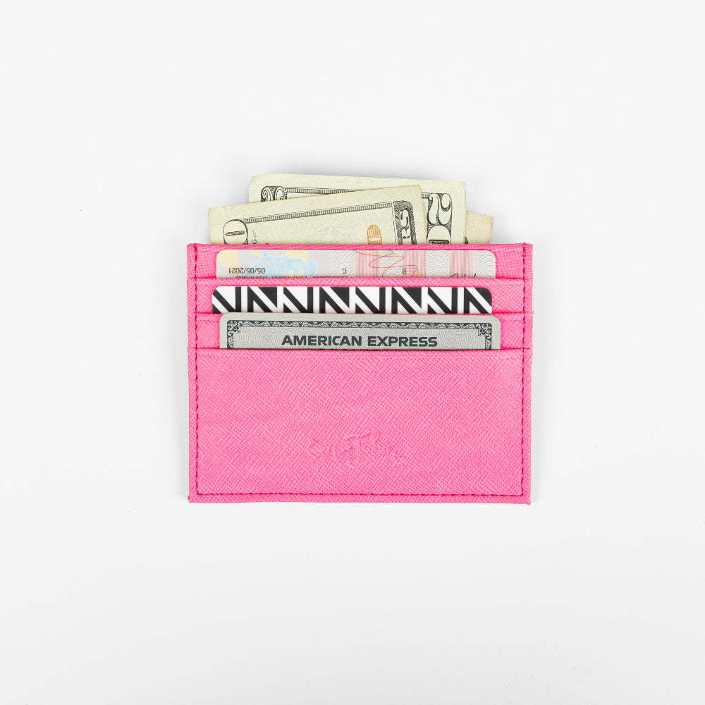 A small card case is just what you need to travel lightly. Smartly designed to store both cards and folded bills, it's a colorful and compact way to carry just what you need. With room for up to six cards, this card case looks neat even when at full capacity.
