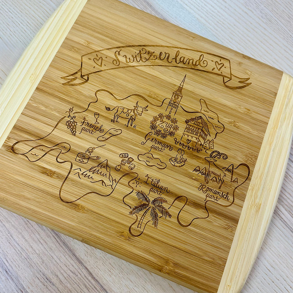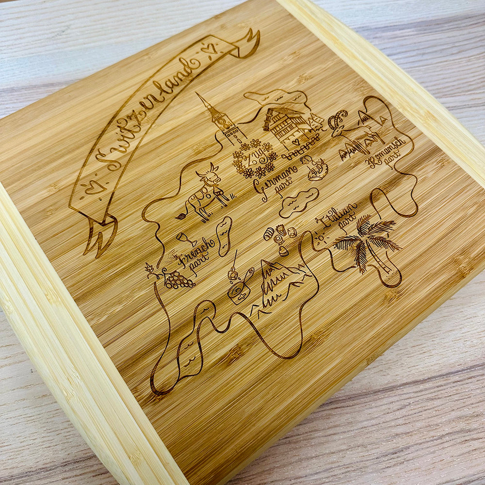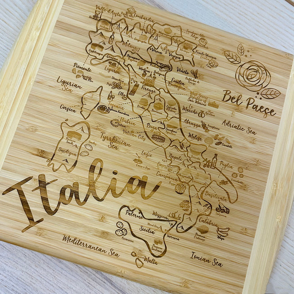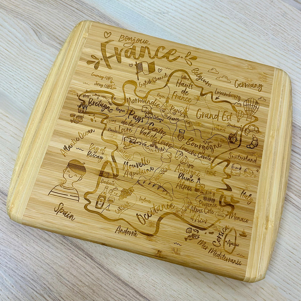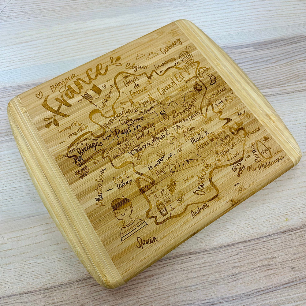 The Illustrated Country Map Charcuterie & Cutting Board can be used as a cutting board or lovely cheese platter, or proudly displayed as a centerpiece for your home. It also makes a great gift for any occasion.
