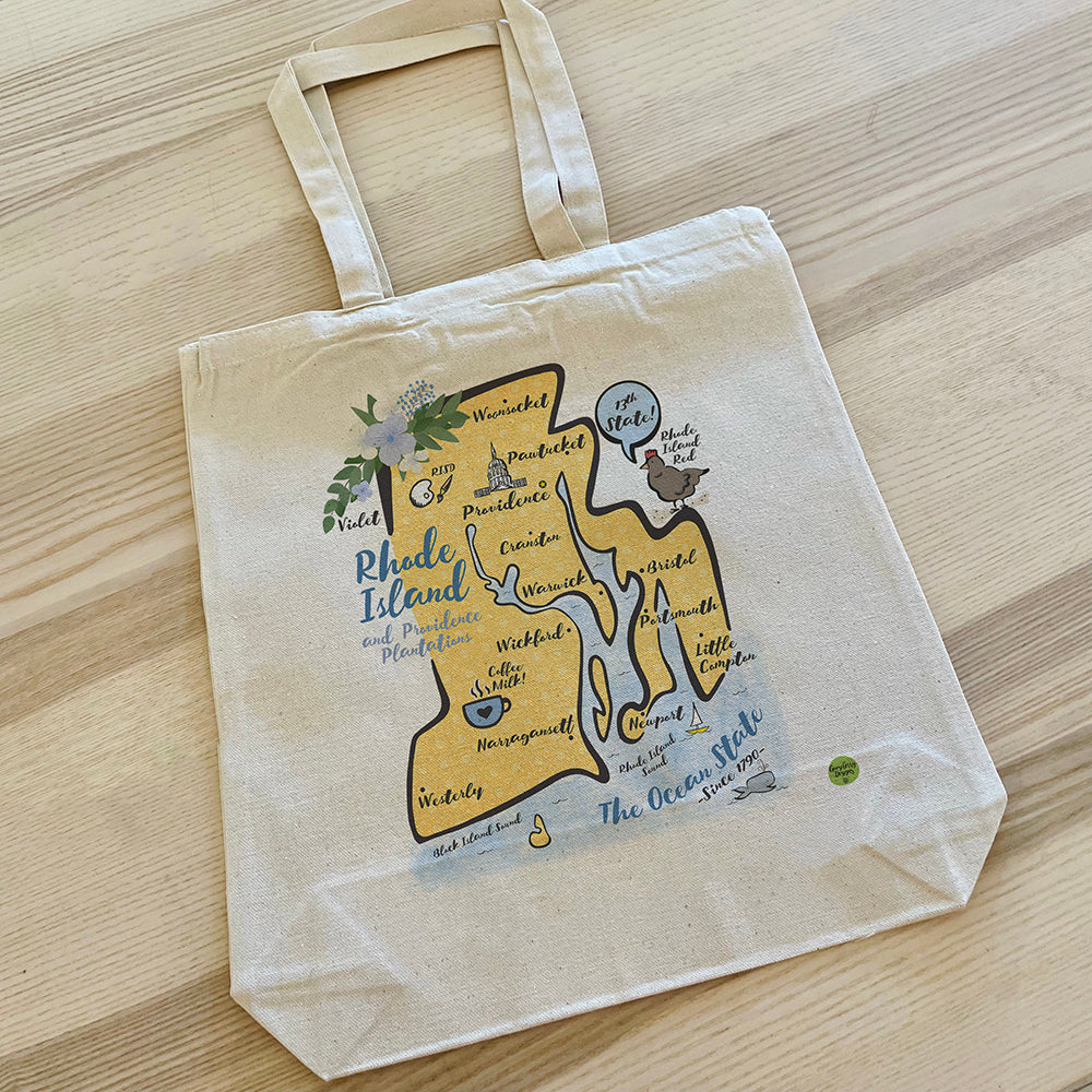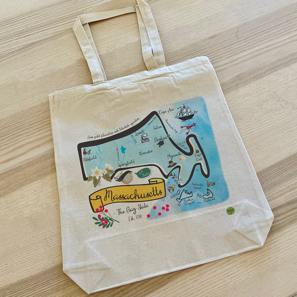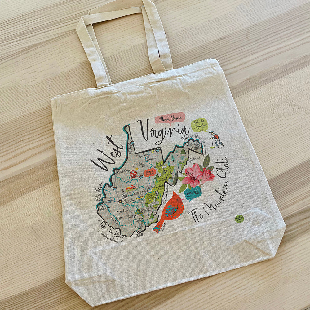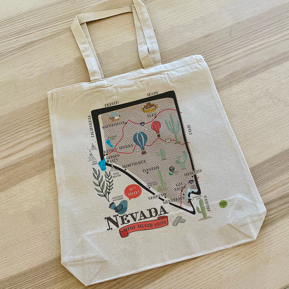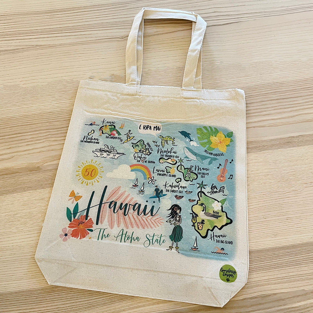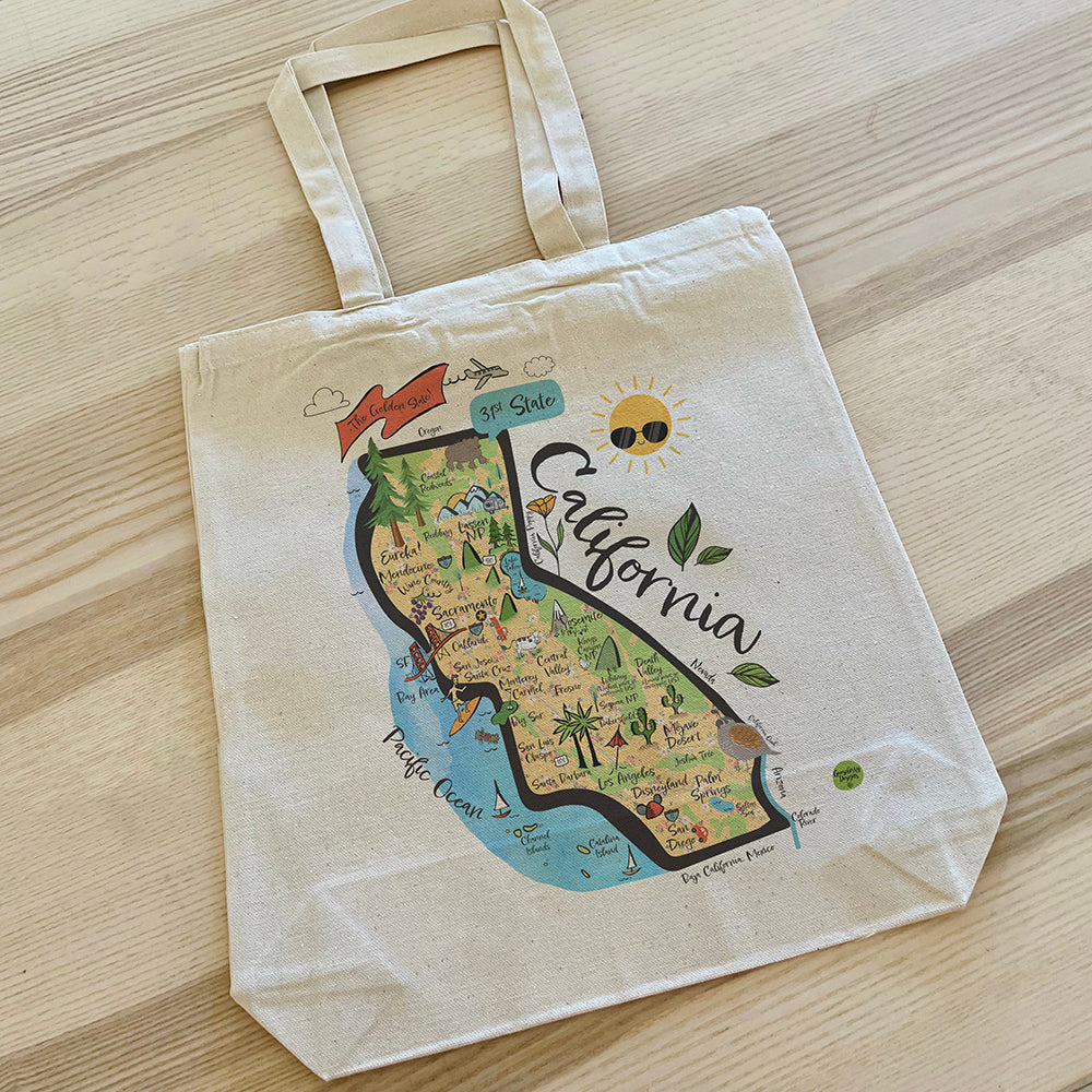 Featuring a signature, hand-drawn, calligraphic state design, this stylish tote is made of 100% organic, natural cotton. It’s ideal for commemorating a memorable vacation, and works wonderfully as a wedding or party favor, corporate gift, or welcome bag.