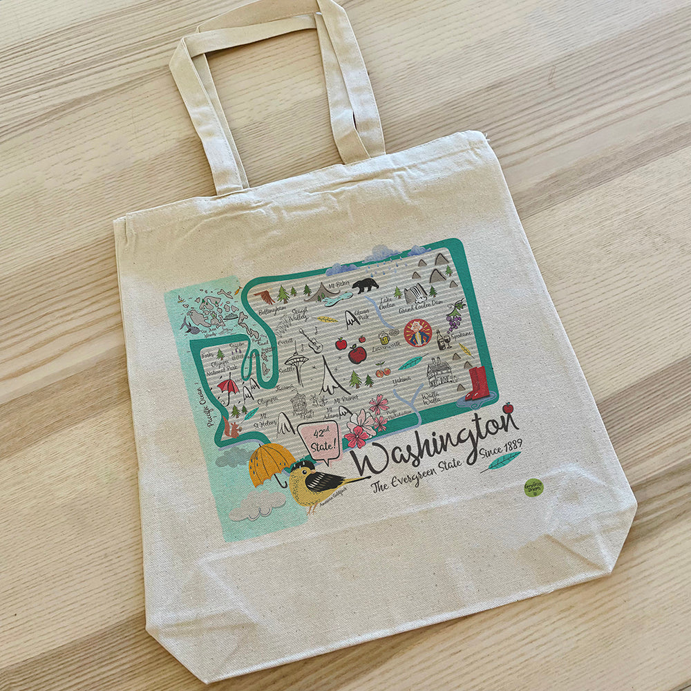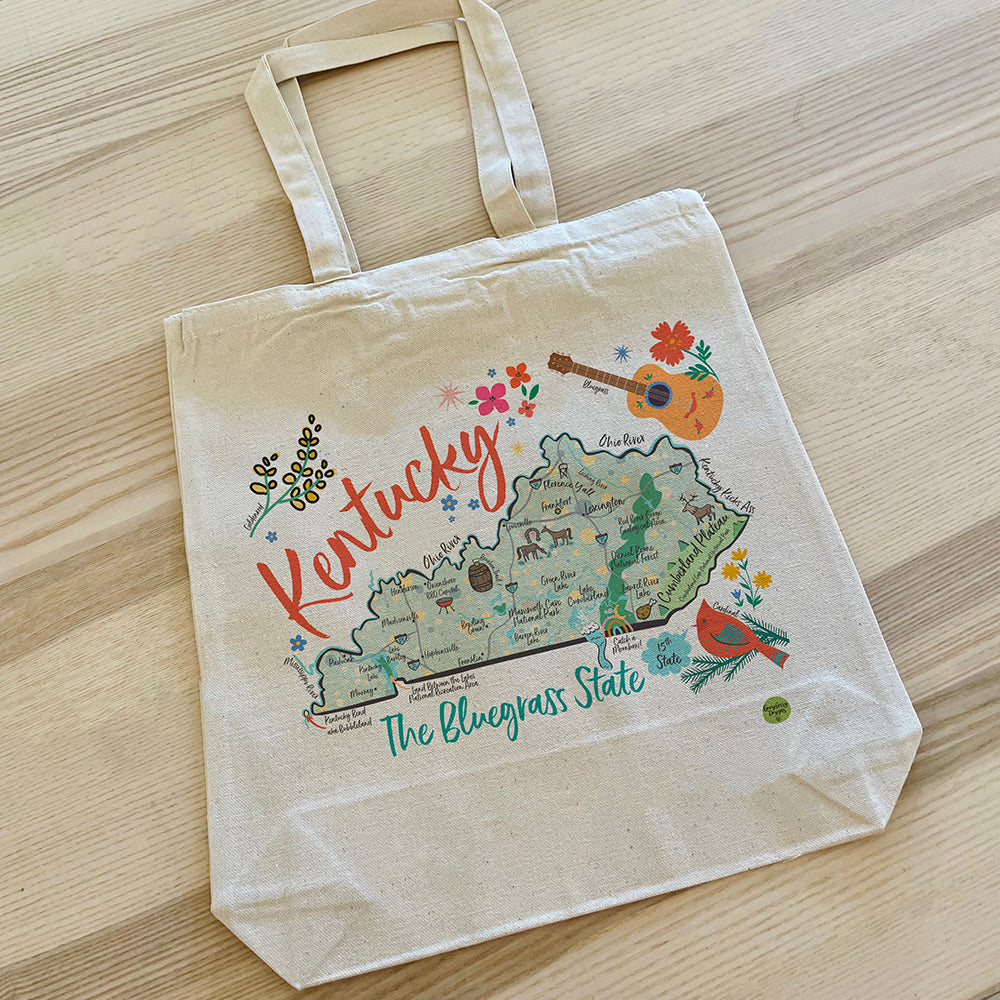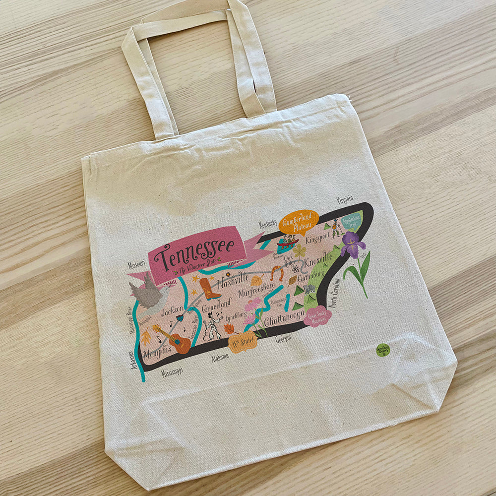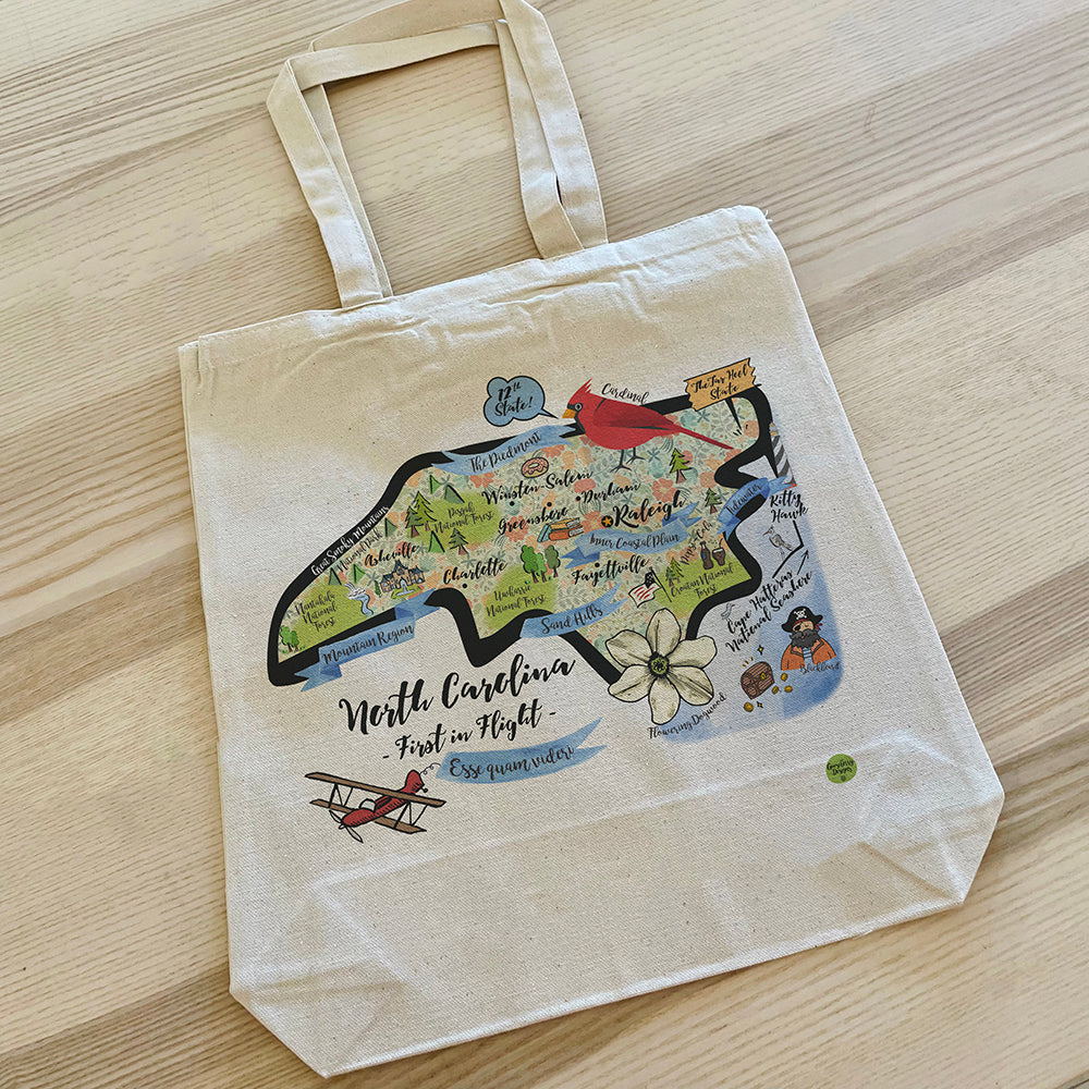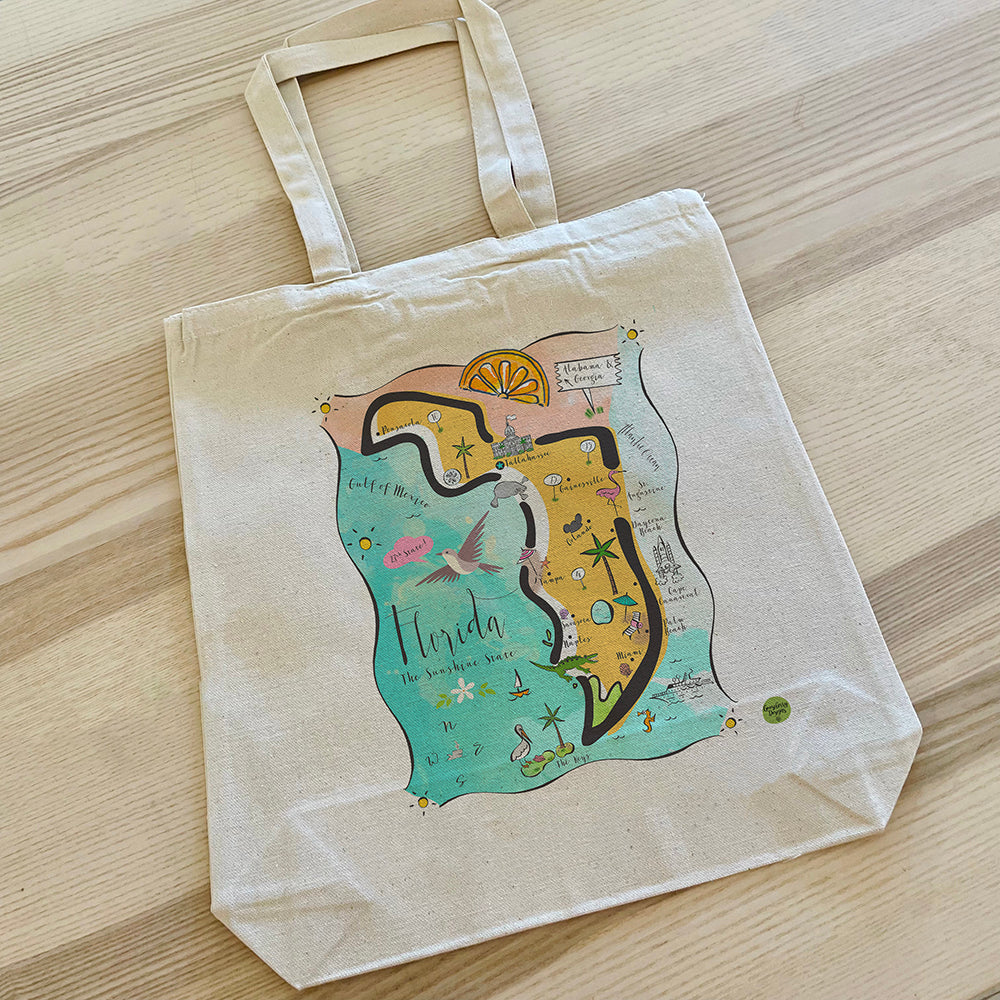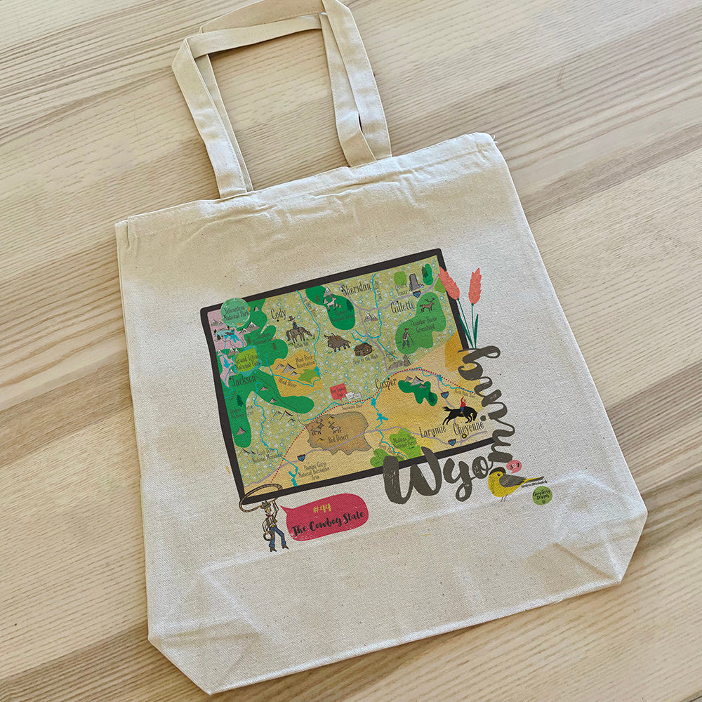 Featuring a signature, hand-drawn, calligraphic state design, this stylish tote is made of 100% organic, natural cotton. It’s ideal for commemorating a memorable vacation, and works wonderfully as a wedding or party favor, corporate gift, or welcome bag.