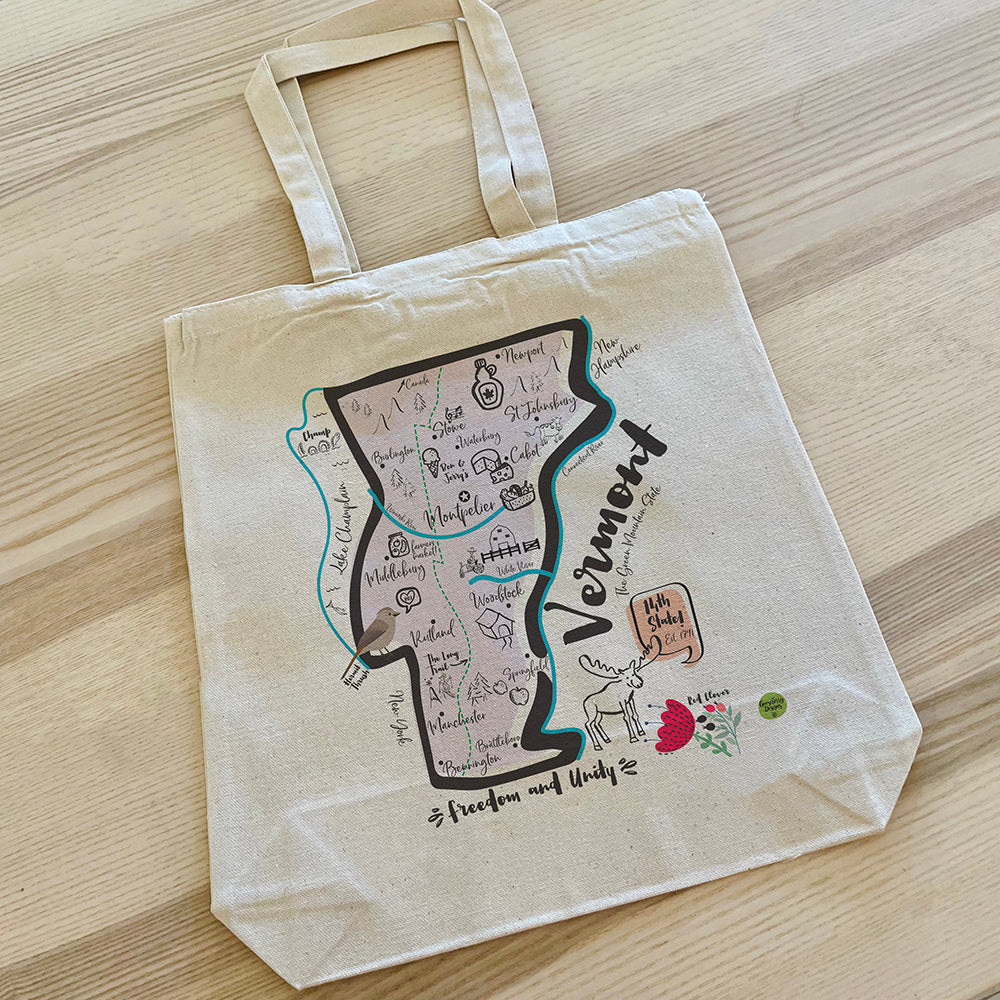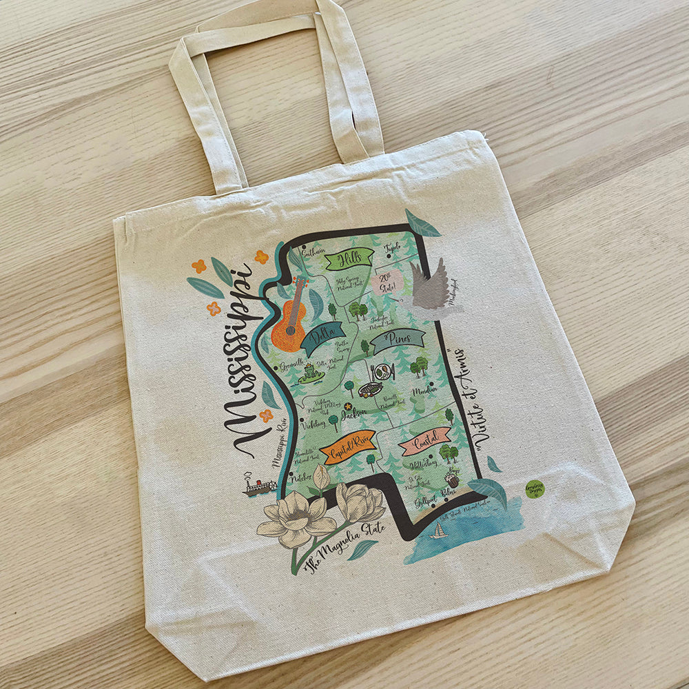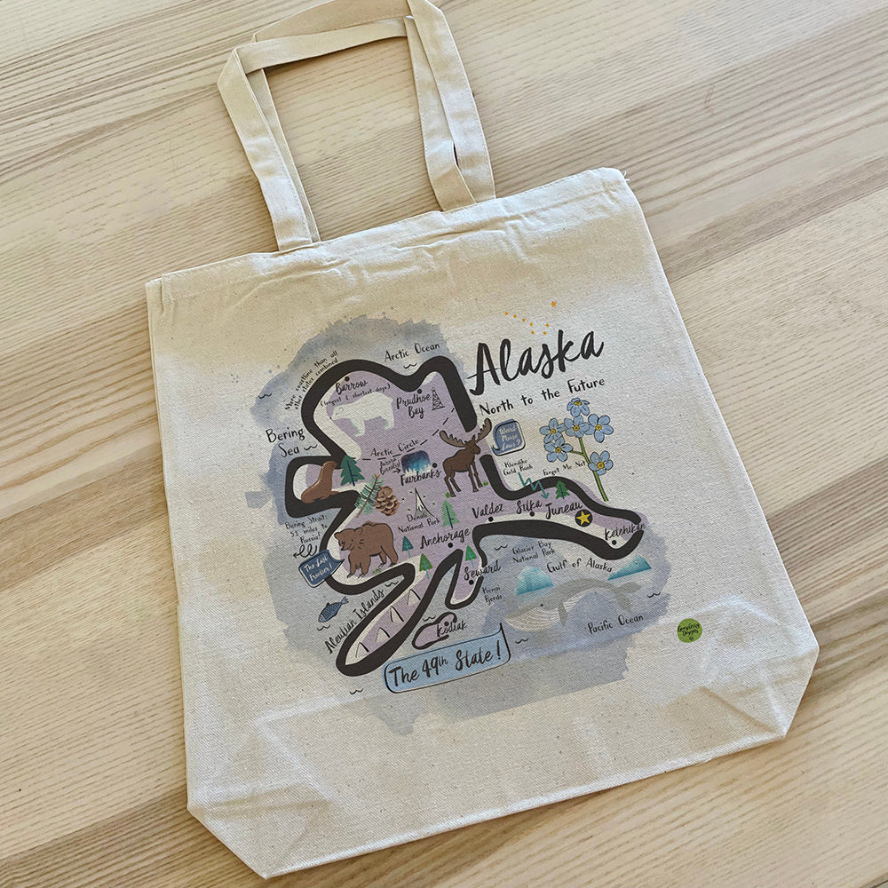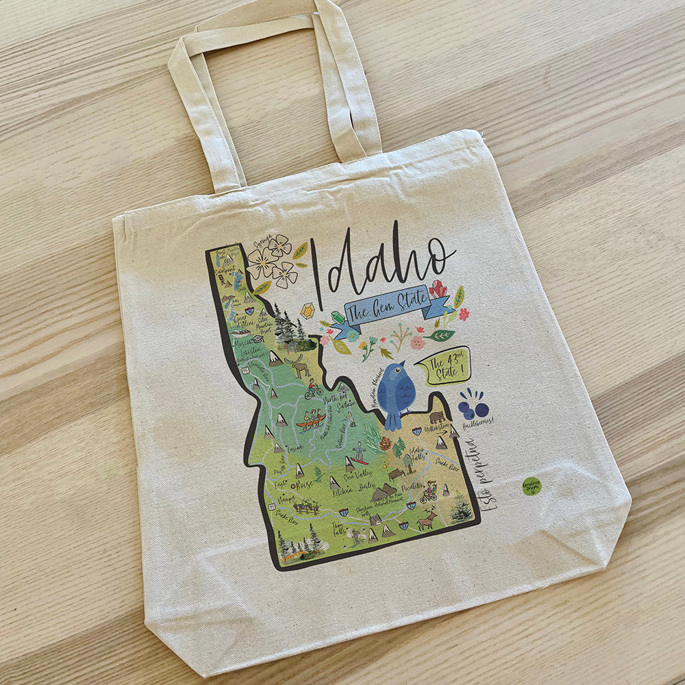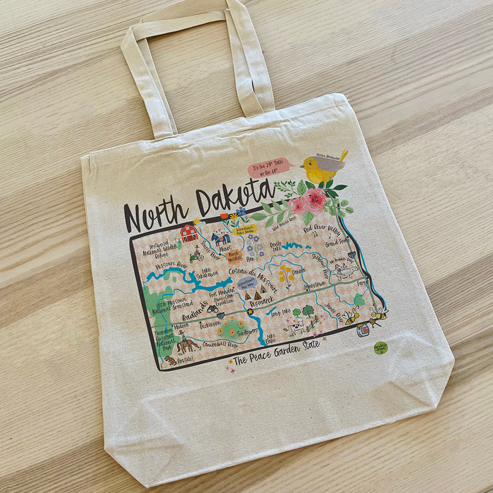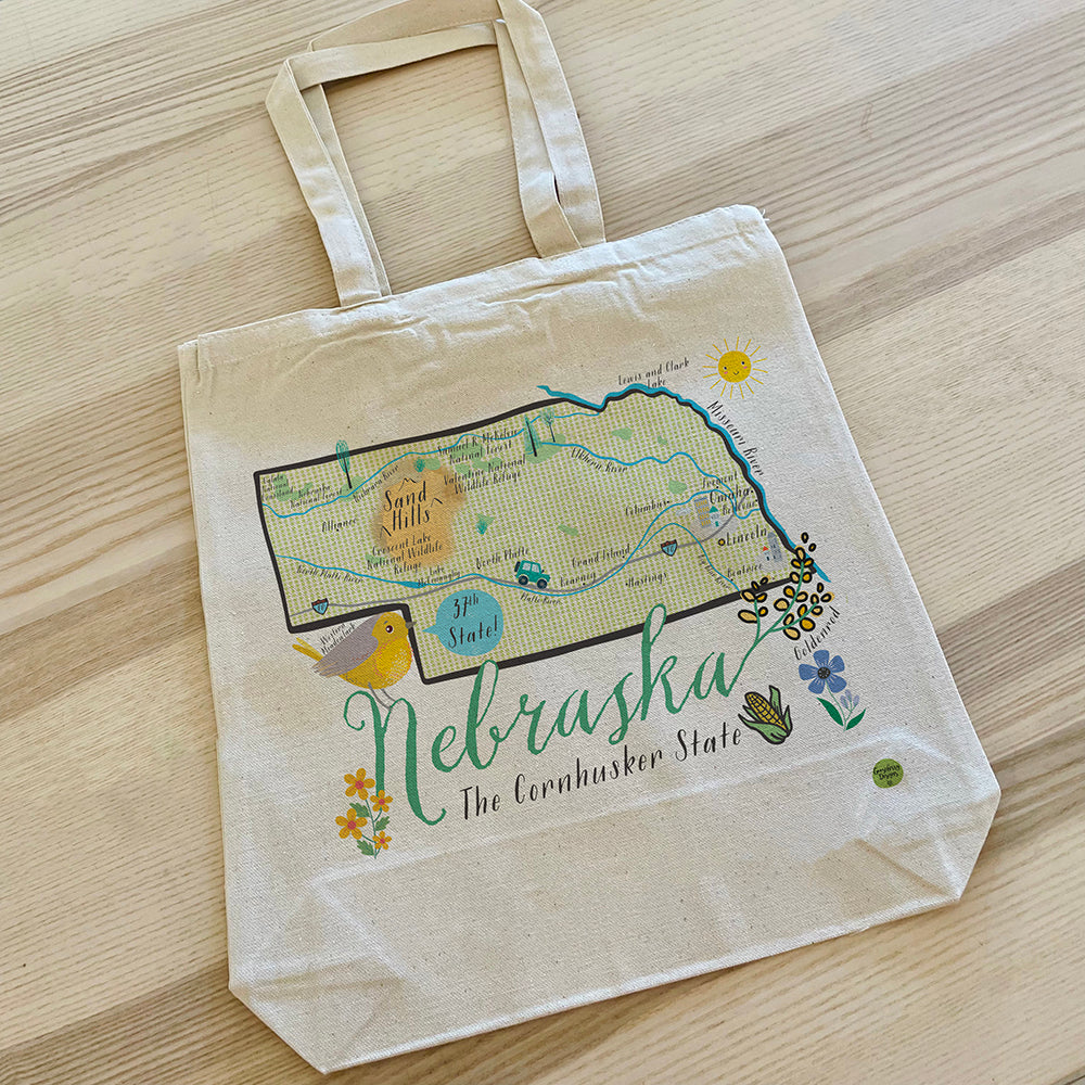 Featuring a signature, hand-drawn, calligraphic state design, this stylish tote is made of 100% organic, natural cotton. It’s ideal for commemorating a memorable vacation, and works wonderfully as a wedding or party favor, corporate gift, or welcome bag.