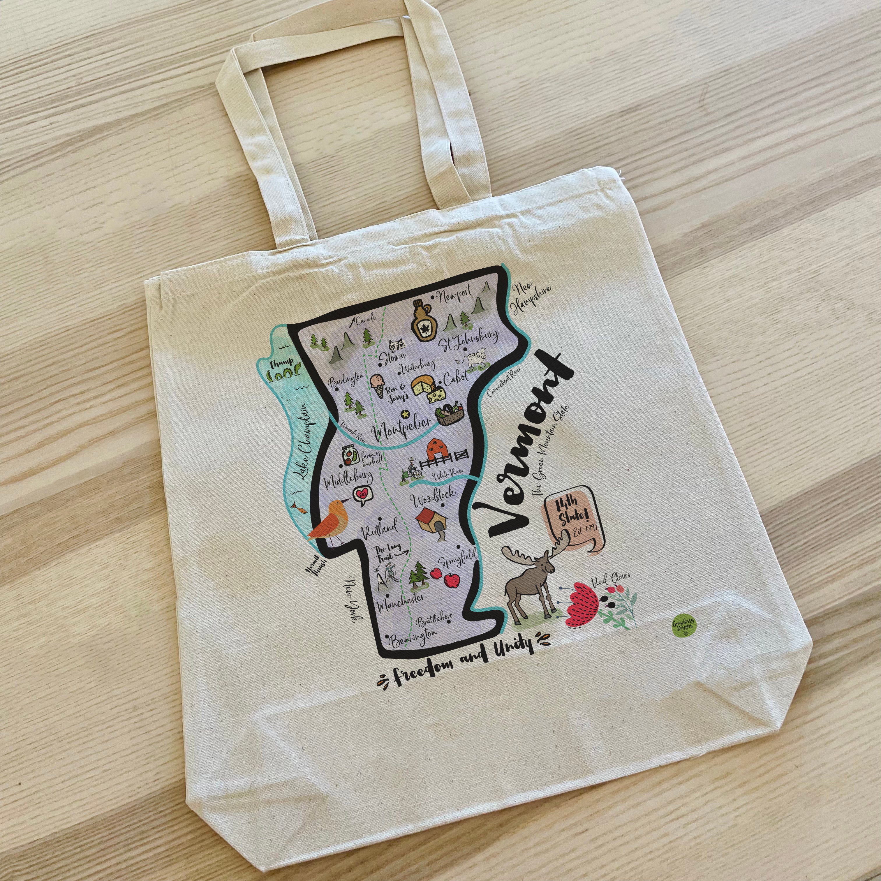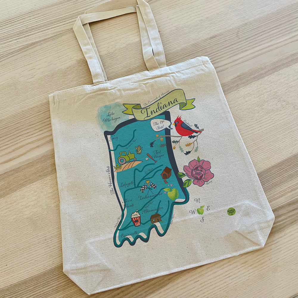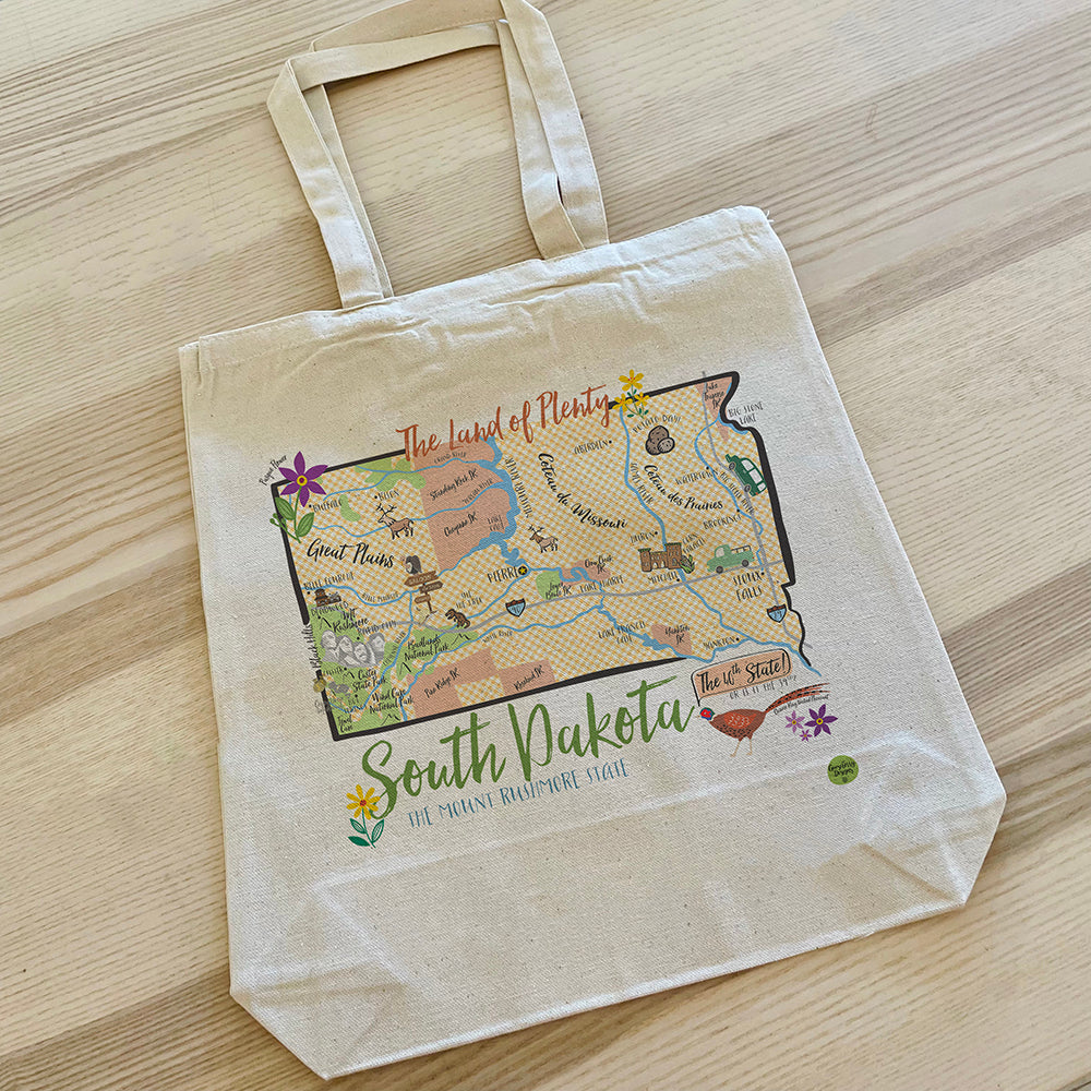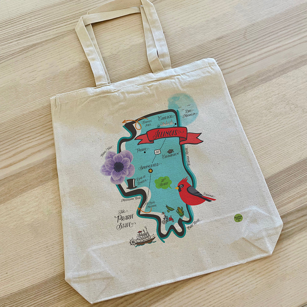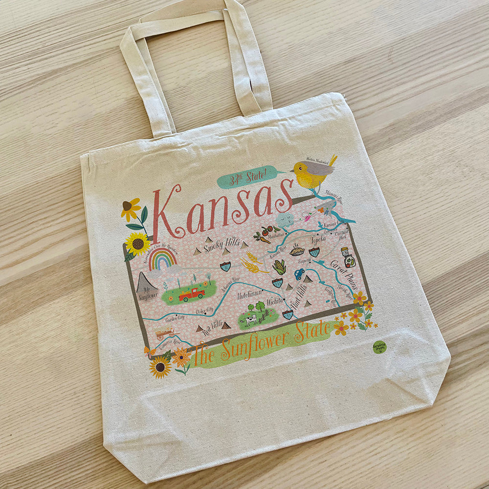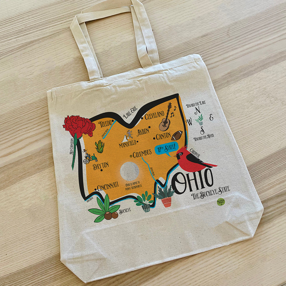 Featuring a signature, hand-drawn, calligraphic state design, this stylish tote is made of 100% organic, natural cotton. It’s ideal for commemorating a memorable vacation, and works wonderfully as a wedding or party favor, corporate gift, or welcome bag.