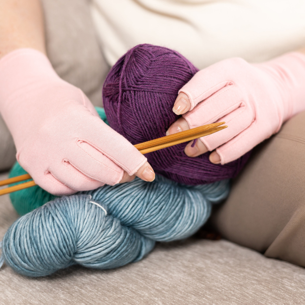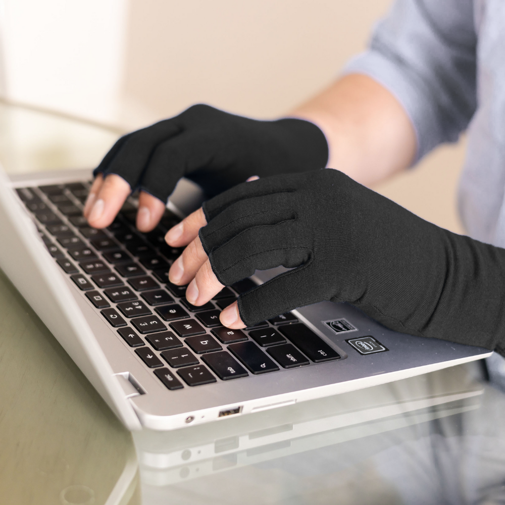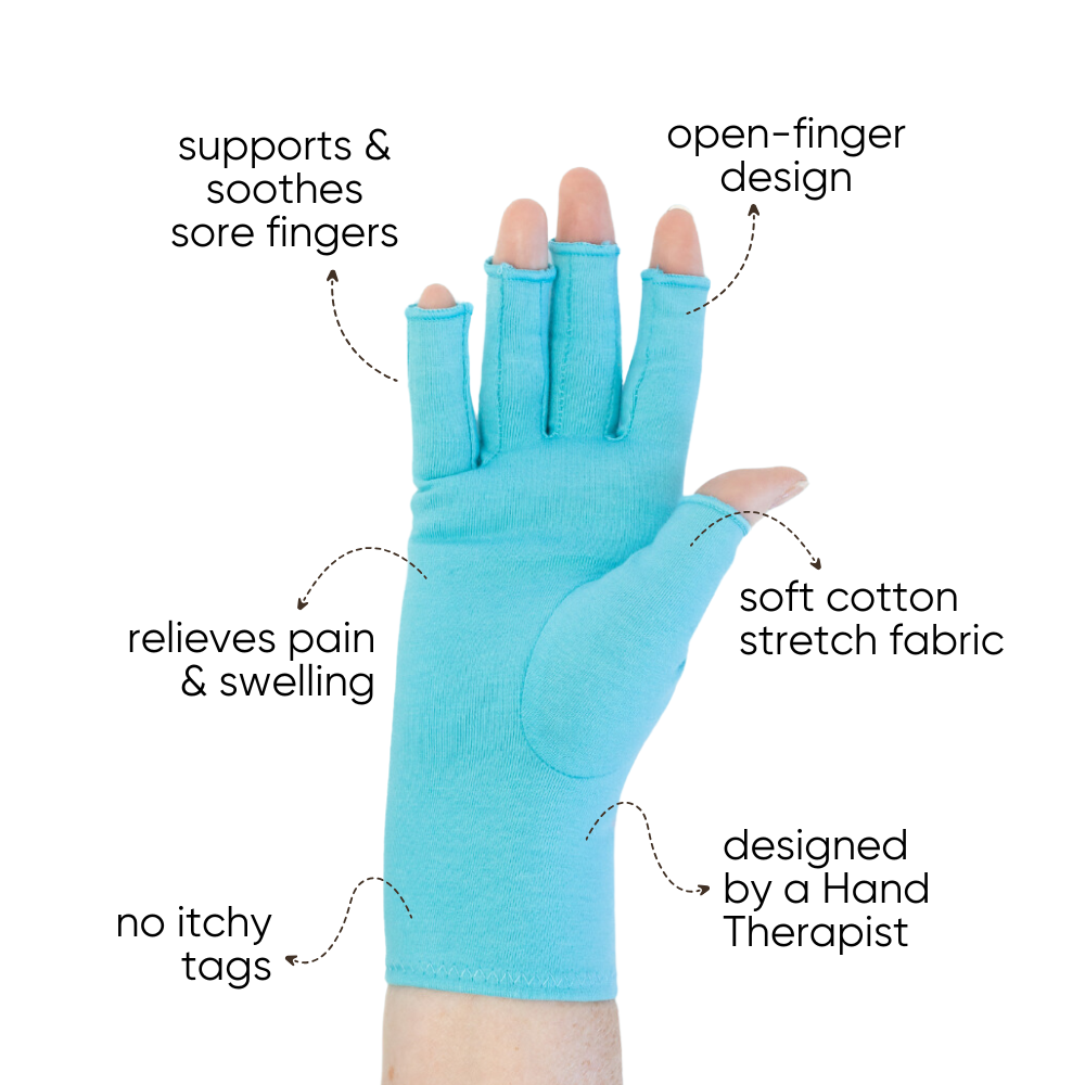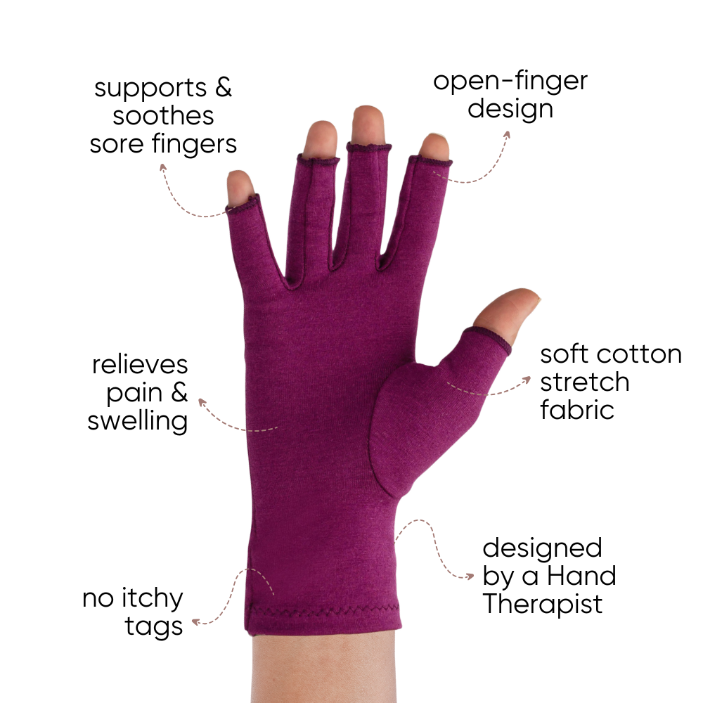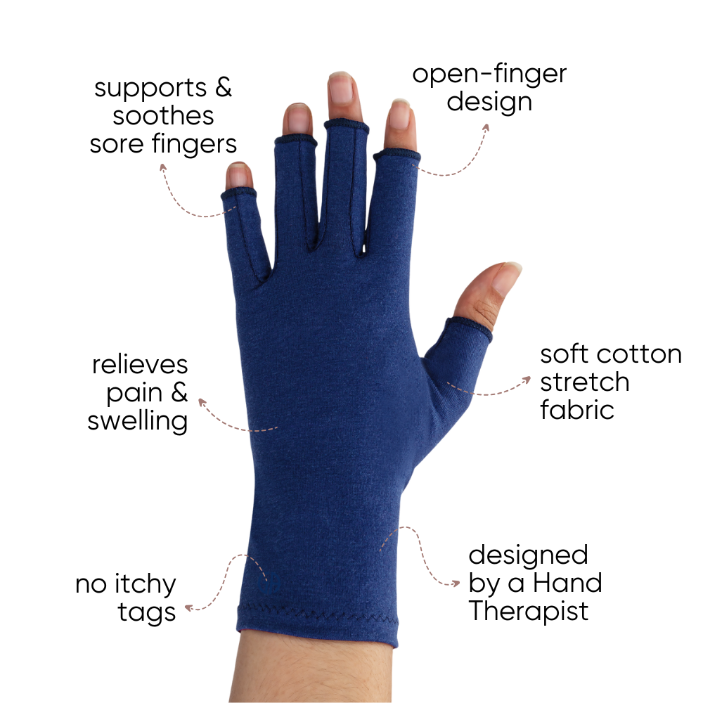 These soft, cotton-stretch Compression Gloves give a gentle hug to your hand. They support sore joints and help reduce pain and swelling, making them ideal for people living with chronic joint pain conditions like arthritis, trigger finger, or RSI.