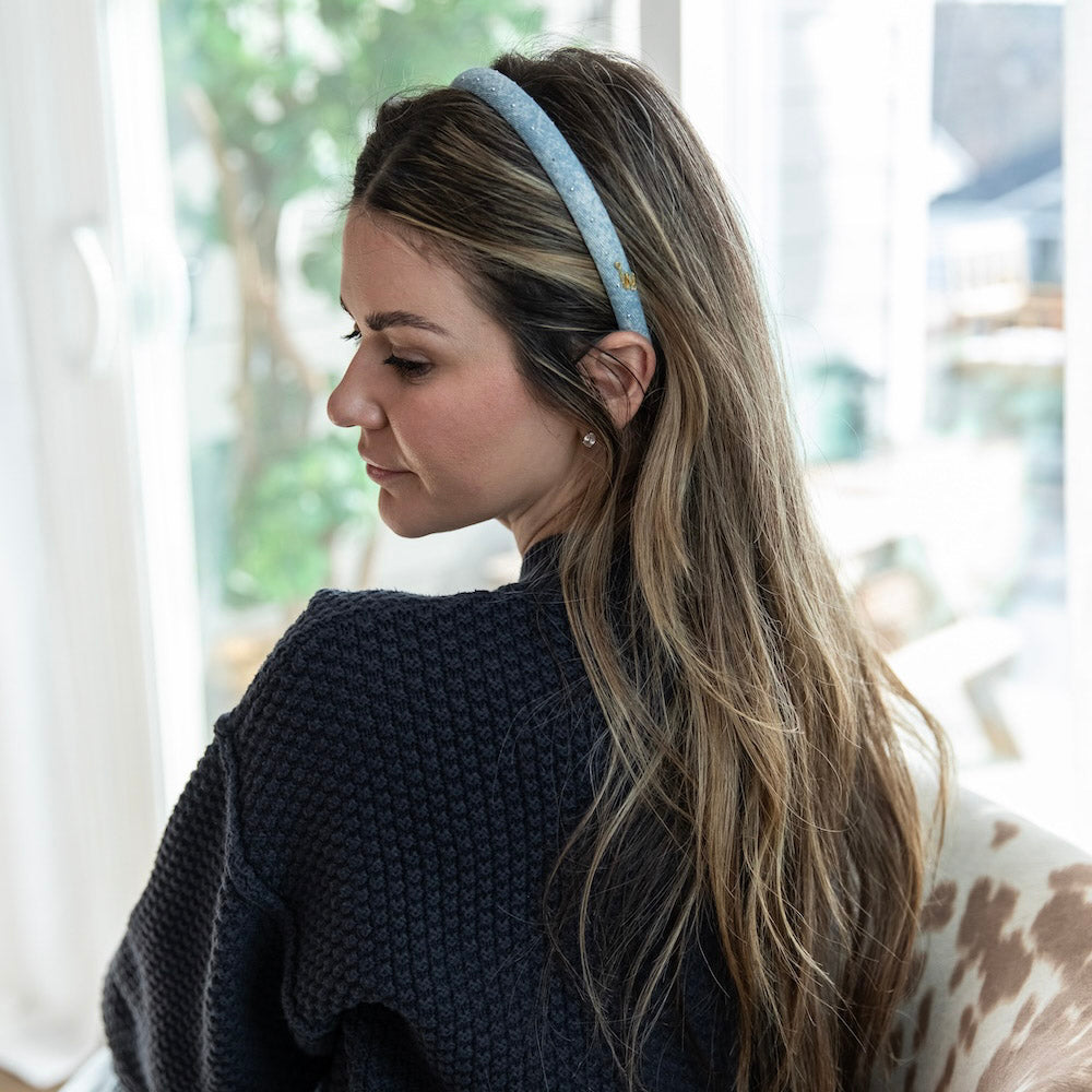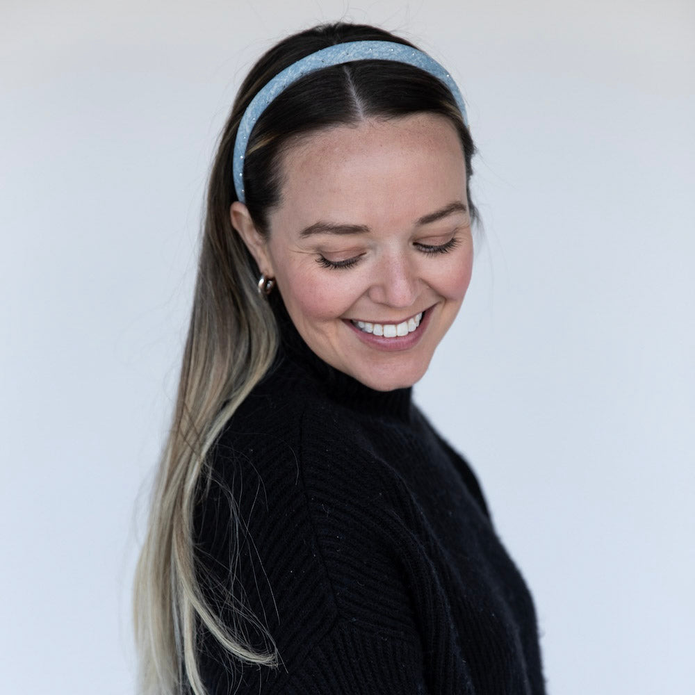The Thin Classic Padded Star Headband colorways bring subtle texture with a hint of shimmer woven throughout. The slim, softly padded shape keeps it easy and wearable, while the star detail adds just enough interest to stand out. Effortless with knits, ideal with denim, and polished without trying too hard.