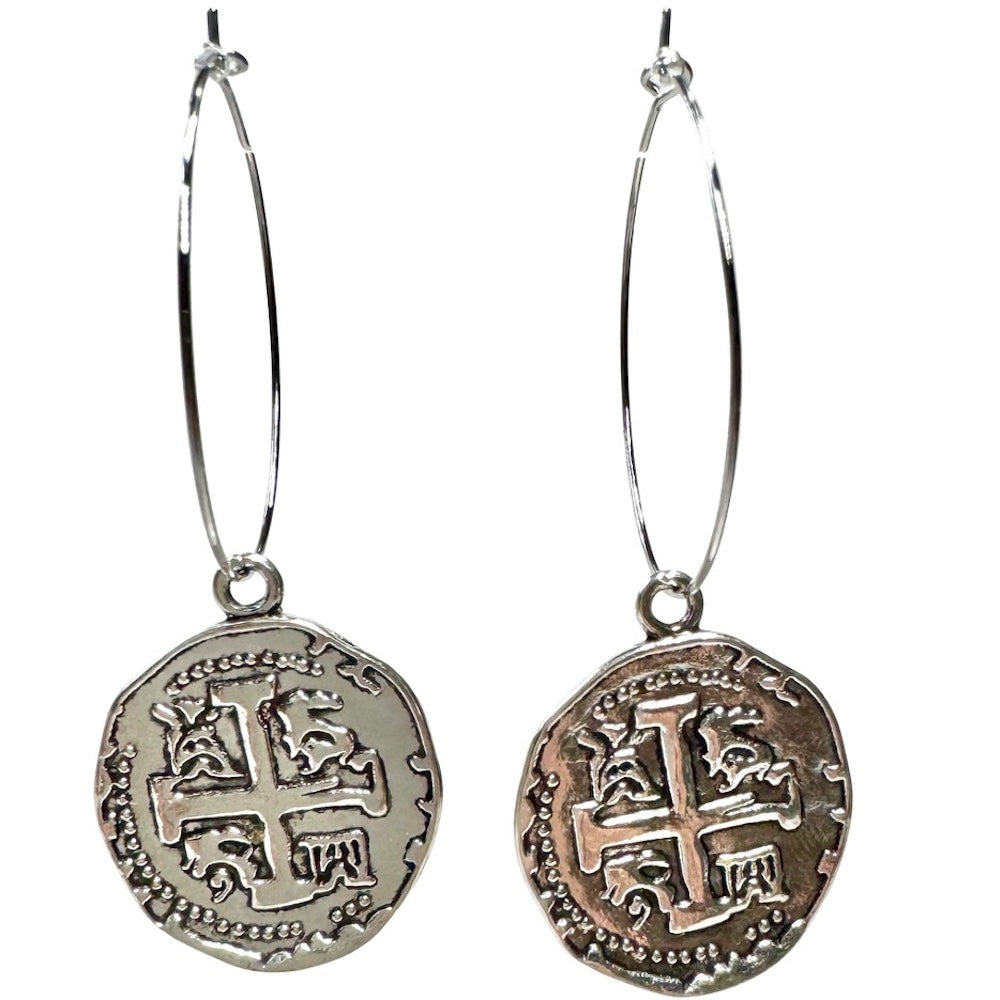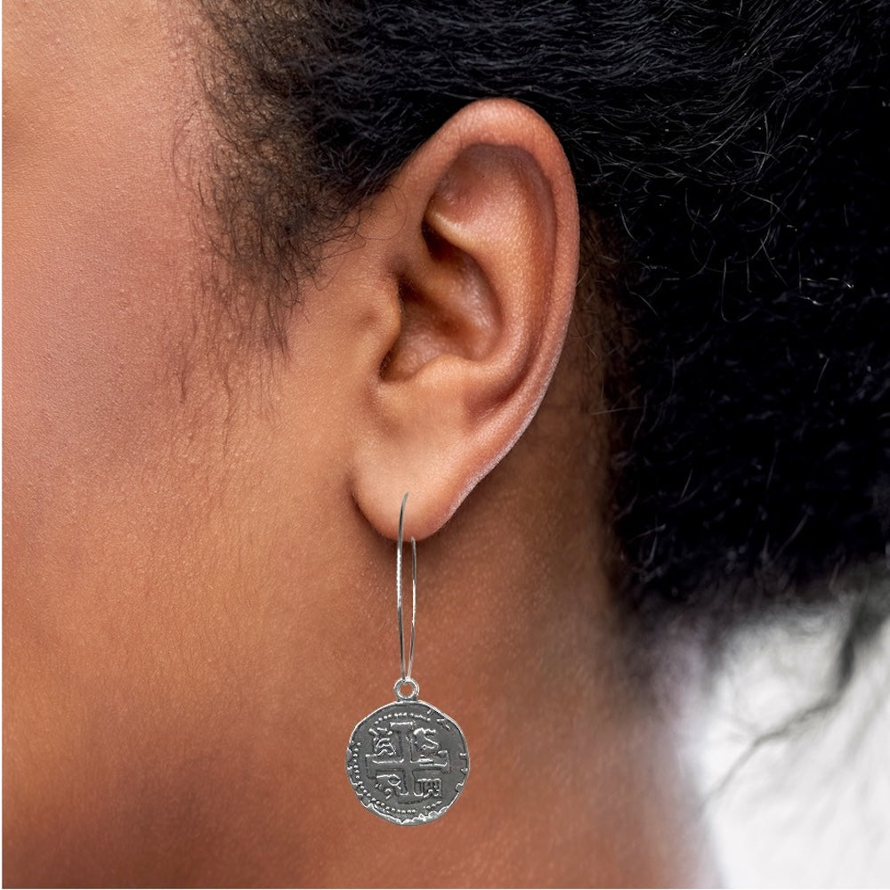 These unique hoops are sure to turn heads! Add some fun to your look with decorative pewter coin earrings.