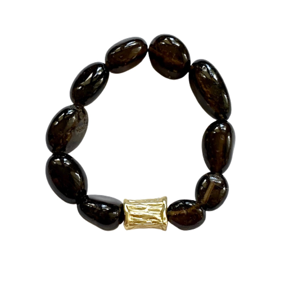 Make a bold statement with this beautiful bracelet featuring smoky quartz beads. Whether you wear it solo or add it to a stack, this piece can effortlessly carry you from day to night.