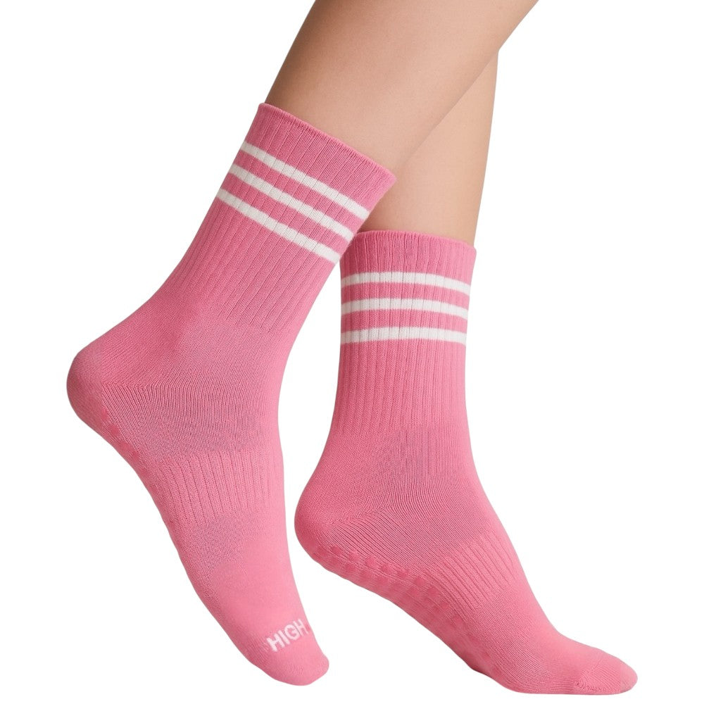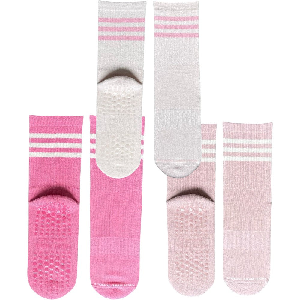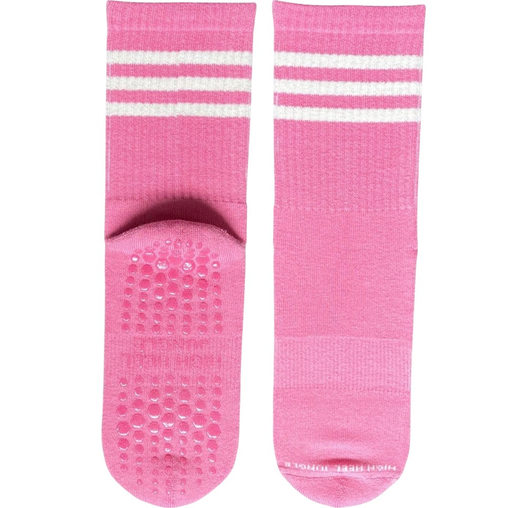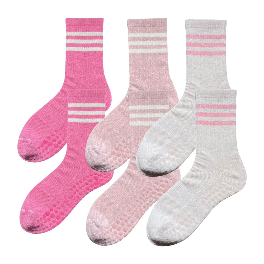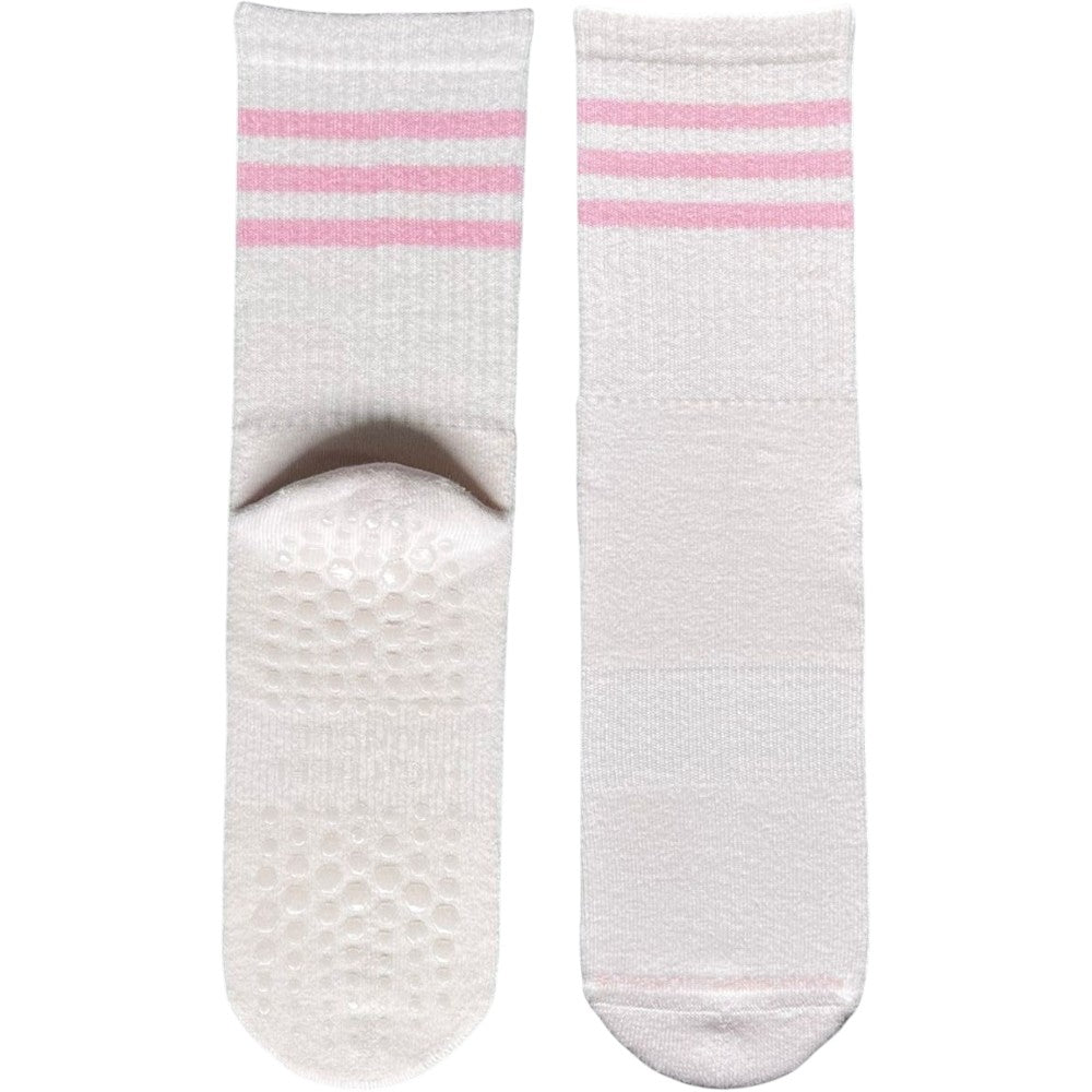 These socks are designed for Pilates and yoga lovers, by Pilates and yoga lovers. They combine a full-sole silicone grip and elevated support with a chic, stylish design. Made from quality, breathable cotton, these socks feature a seamless toe for comfort, arch support, and a ribbed ankle that provides light compression to stay in place and boost circulation.
