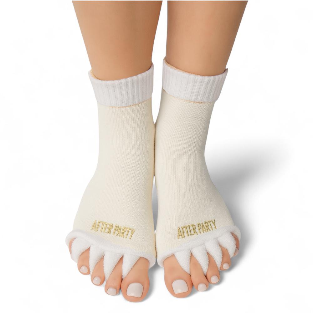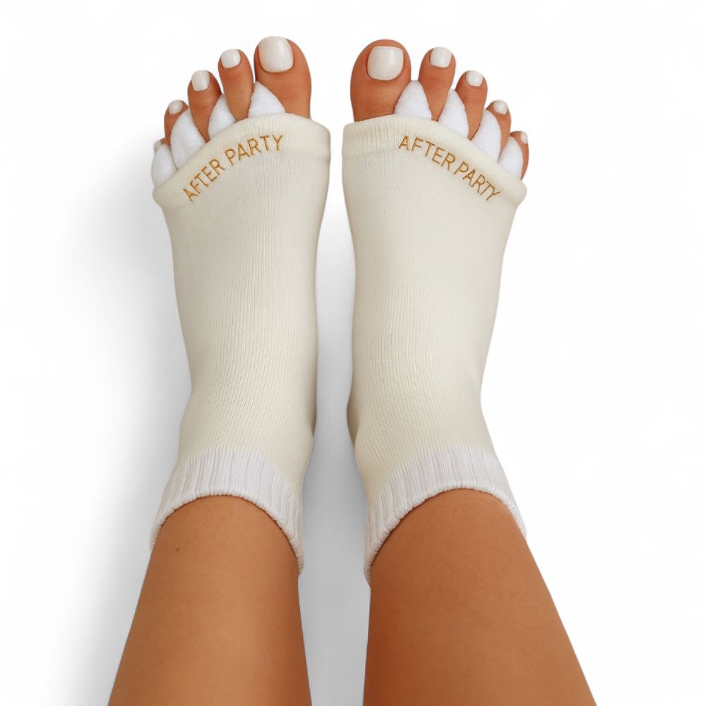 Give your feet the after party they deserve with these socks. Slip them on after a long day in heels or on your feet, and feel instant bliss as the plush cotton spacers stretch, soothe, and realign your toes. In just 20 minutes, these cozy recovery socks can help undo the damage of modern footwear—leaving your feet relaxed, refreshed, and ready to dance again.