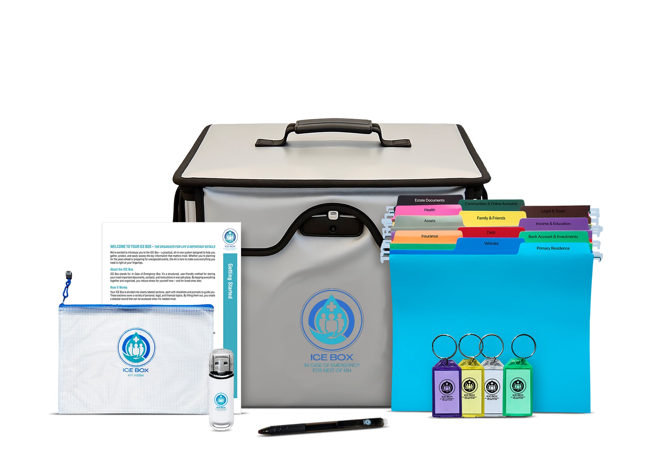 Your ultimate life organizer and peace-of-mind “go box.” It’s more than an organizer—it’s a complete system designed to safeguard your life’s most important information and valuables in one secure, fire-resistant place. Whether used for everyday peace of mind or in the event of an emergency, this box ensures your loved ones know exactly where to turn.