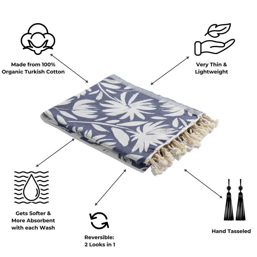 The ideal way to make a statement and add some color and design to any bathroom. This fun floral Turkish towel (thin with no terrycloth) is sure to brighten each day and become one of your favorite bath accessories!