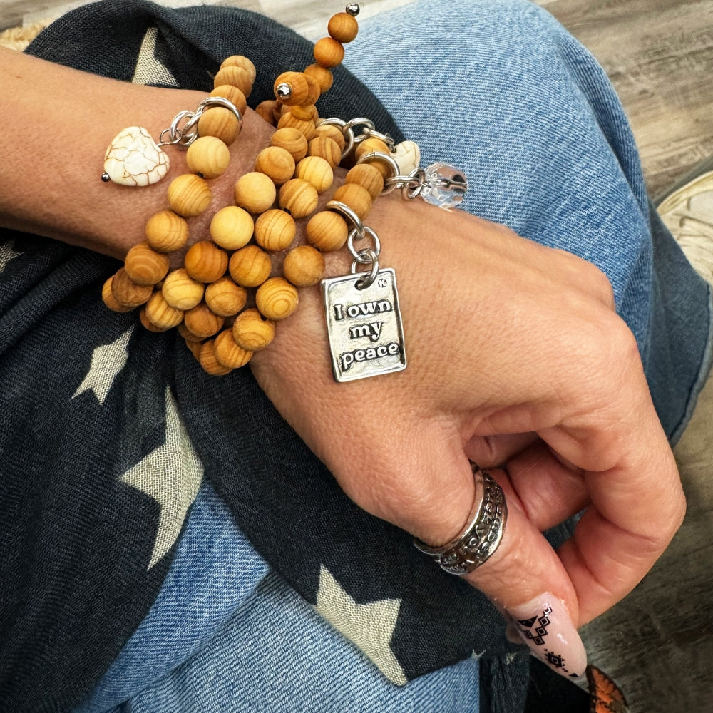 Your peace is yours to protect. The I Own My Peace Heart Wood Boho Wrap is a versatile bracelet-to-necklace piece designed to remind you that calm is a choice—and it’s always within reach.
