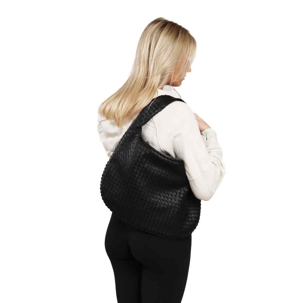 Introducing the Donna Woven Bindle Bag. This stylish bag features a convenient top zipper closure and interior zipper pocket, providing ample space for all your essentials. The Donna effortlessly drapes over your shoulder, making it the ideal accessory for everyday use.