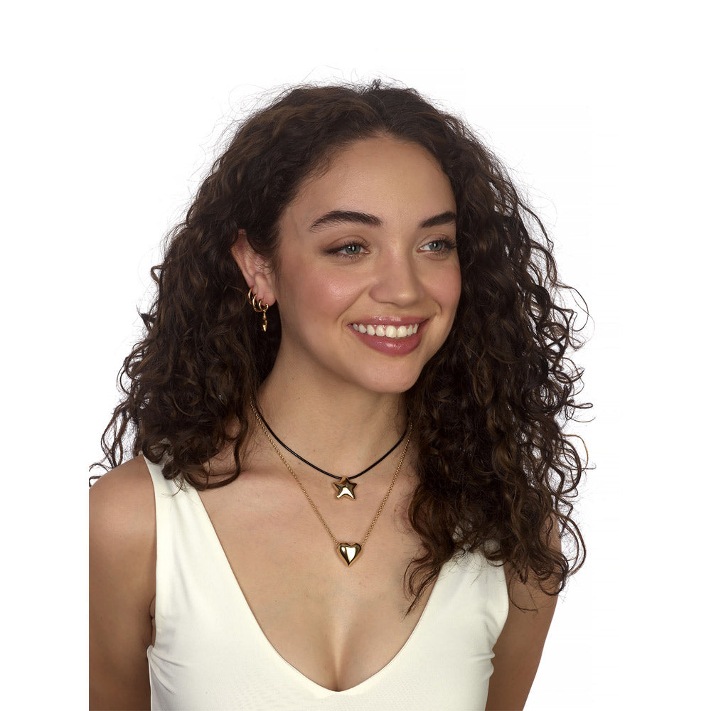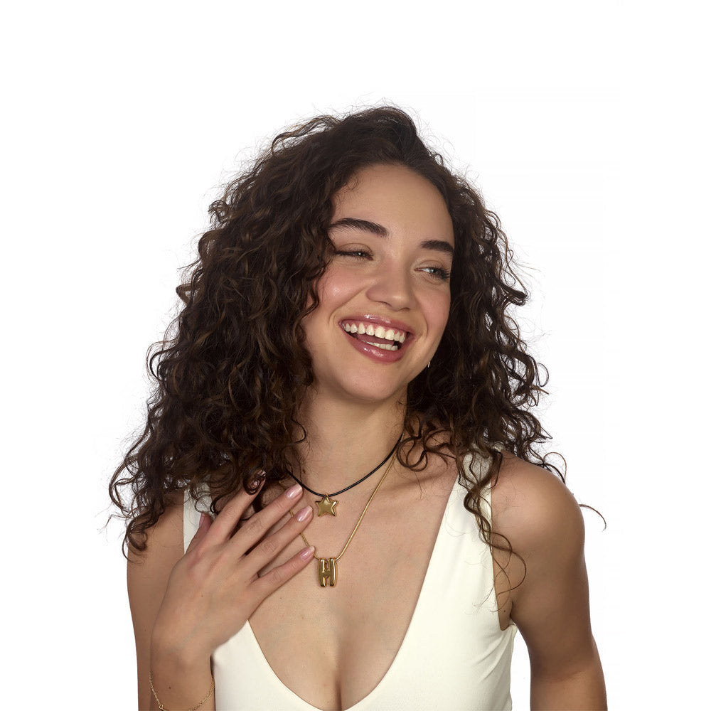 The Midnight Star Necklace features a bold, high-polish gold-plated puffed star with a fresh, fashion edge. Strung on a sleek black cord, it’s effortlessly cool—ideal solo or layered.