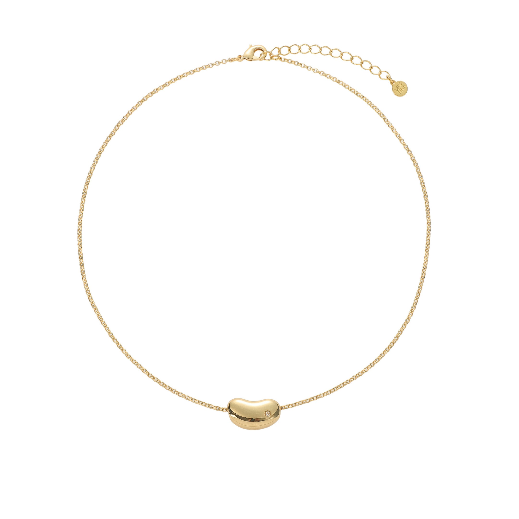 The Moonbean Necklace is a romantic blend of elegance and charm, featuring an oblong bean with an off-center stone on a delicate rolo chain—a modern, yet timeless piece.