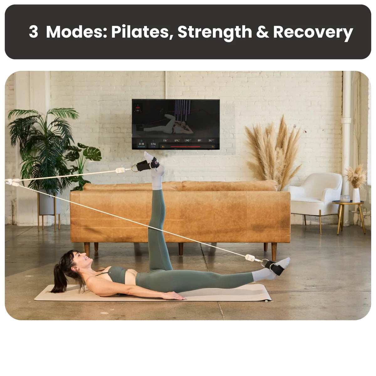 AXIS is a complete gym replacement with smart training features designed to deliver results. This portable smart gym can be used as a Pilates reformer, strength trainer, cable system, and more!