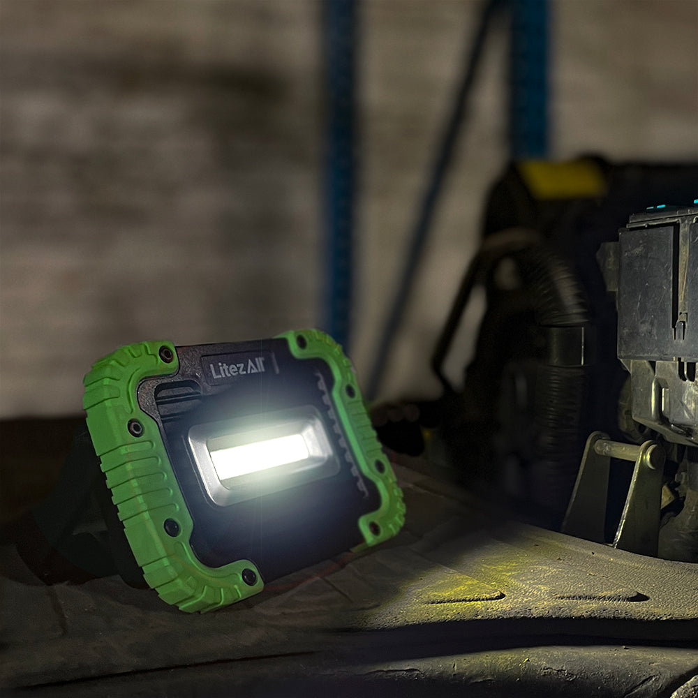 The 1000 Lumen Work Light is small enough to store in tool boxes, backpacks, and glove boxes, yet bright enough for home projects, car repairs, workshop tasks, or camping. The seven-position kickstand puts light where you need it and also functions as a convenient carry handle.