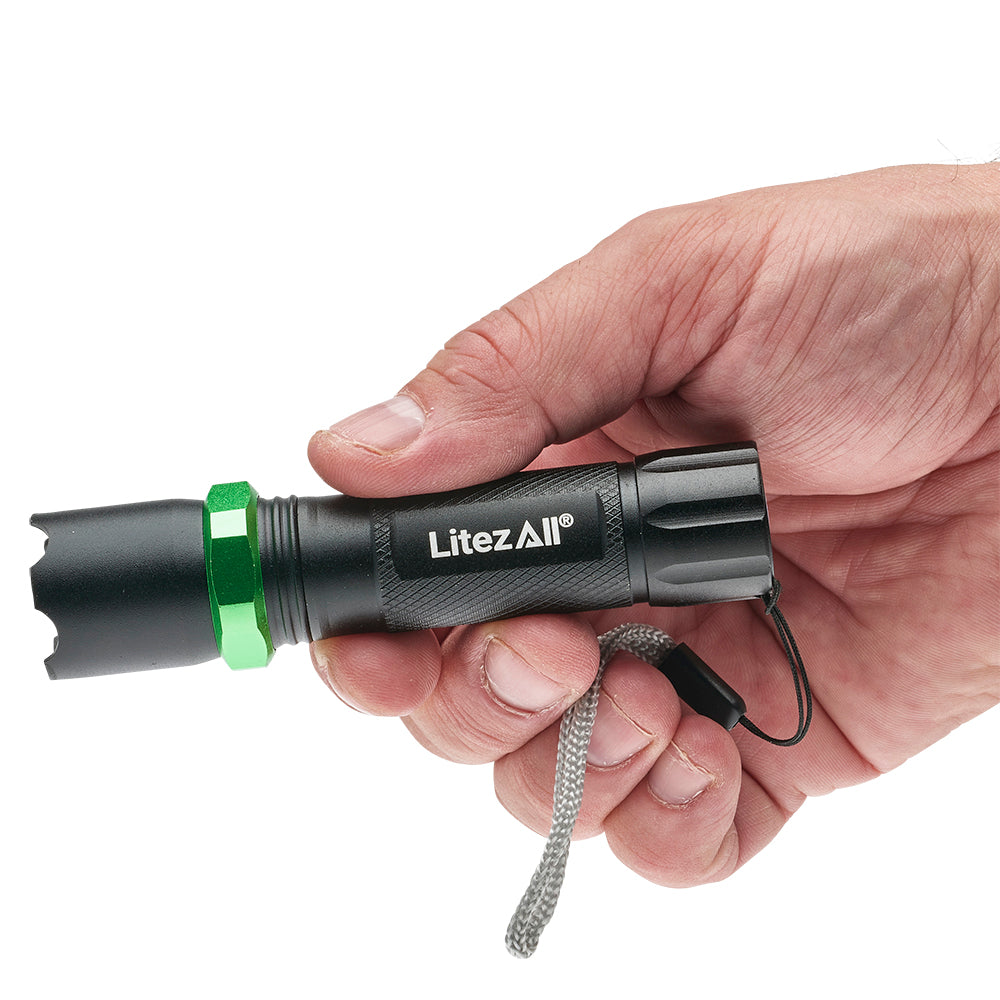 The Mini Rechargeable Tactical Flashlight packs a punch for its size. Its three light modes include high and low brightness, plus white strobe. A push/pull focus beam and removable lanyard round out the features on this handy tool.