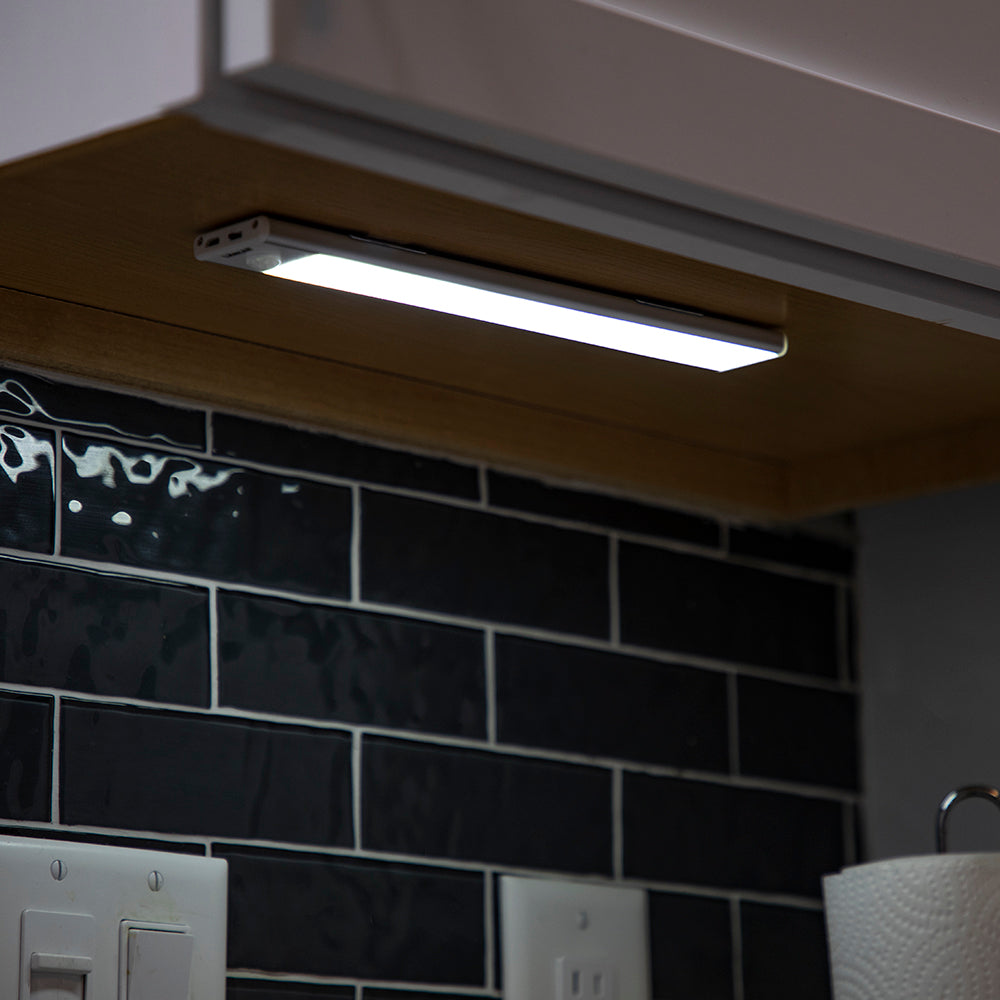 The Slim Rechargeable Motion-Activated Light Bar easily installs under cabinets, in bathrooms, in storage rooms, and anywhere else temporary, bright light is needed. Its magnetic back adheres to most smooth, rust-free metal surfaces. You can also mount this light to non-metallic surfaces by using the included peel-and-stick clips.