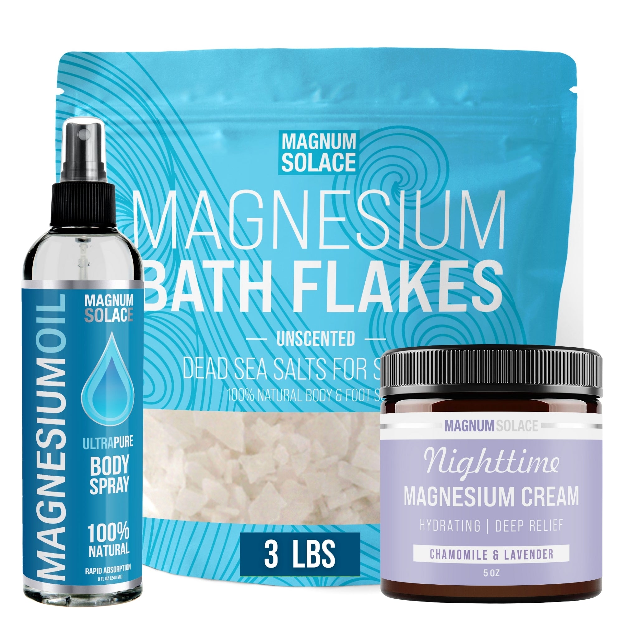Magnum Solace delivers natural solutions for muscle relaxation, stress reduction, and overall wellness with topical products rich in magnesium. Magnesium is easily absorbed through the skin with our quality line of creams, sprays, and bath flakes.