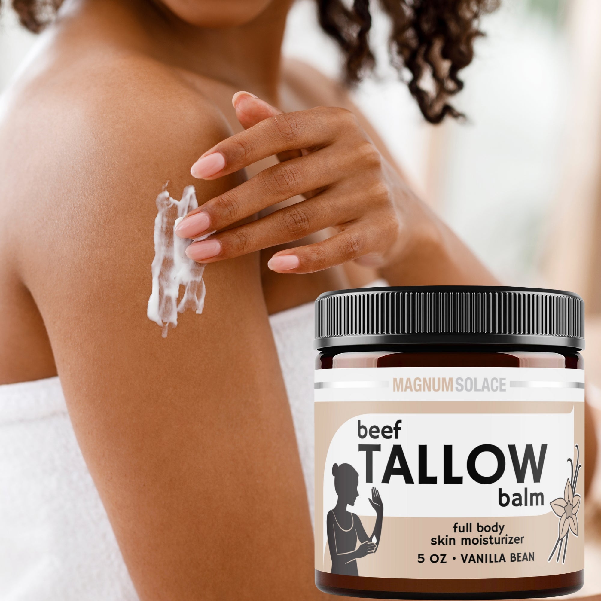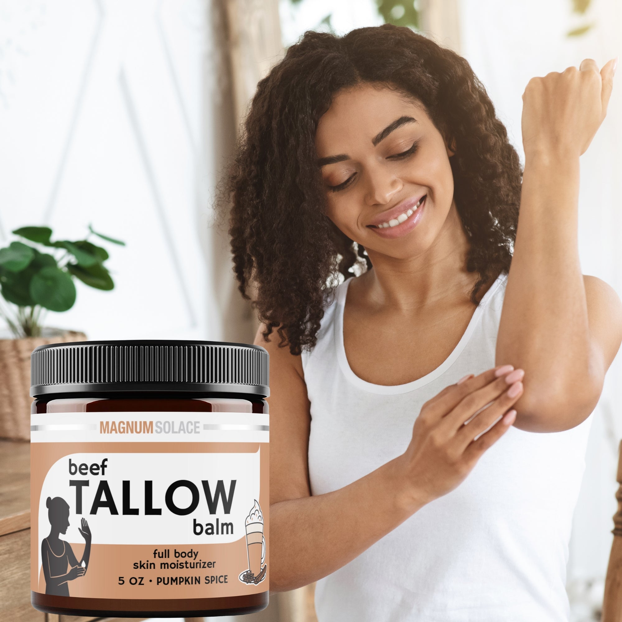 Get into the mood of the season with ultra-hydrating, limited-edition fall scents of Beef Tallow Balm. Finally a whipped, creamy beef tallow balm ideal for dry, sensitive skin. Combined with almond oil, this balm is small-batch formulated for a light, non-greasy, smooth application. Beef Tallow Balm helps rehydrate and restore those extra-dry spots anywhere on your body—face, hands, elbows, and feet.