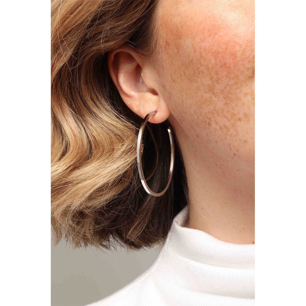 These classic geometric post hoops offer a modern twist on classic hoop earrings, featuring clean lines and a sleek design. Lightweight and versatile, they effortlessly transition from day to night, making them a great addition to any and every jewelry collection.