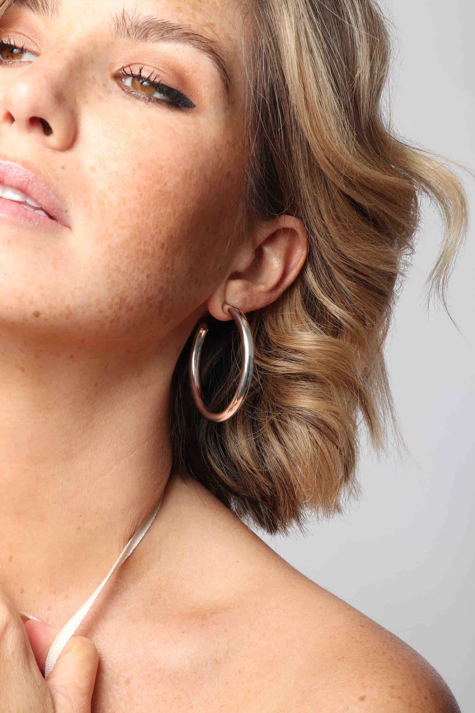 These striking lightweight hollow tube hoop earrings make a bold statement with their eye-catching design and modern silhouette. Complete with custom comfort backings, they provide a secure fit that ensures you can wear them with ease and confidence all day long.