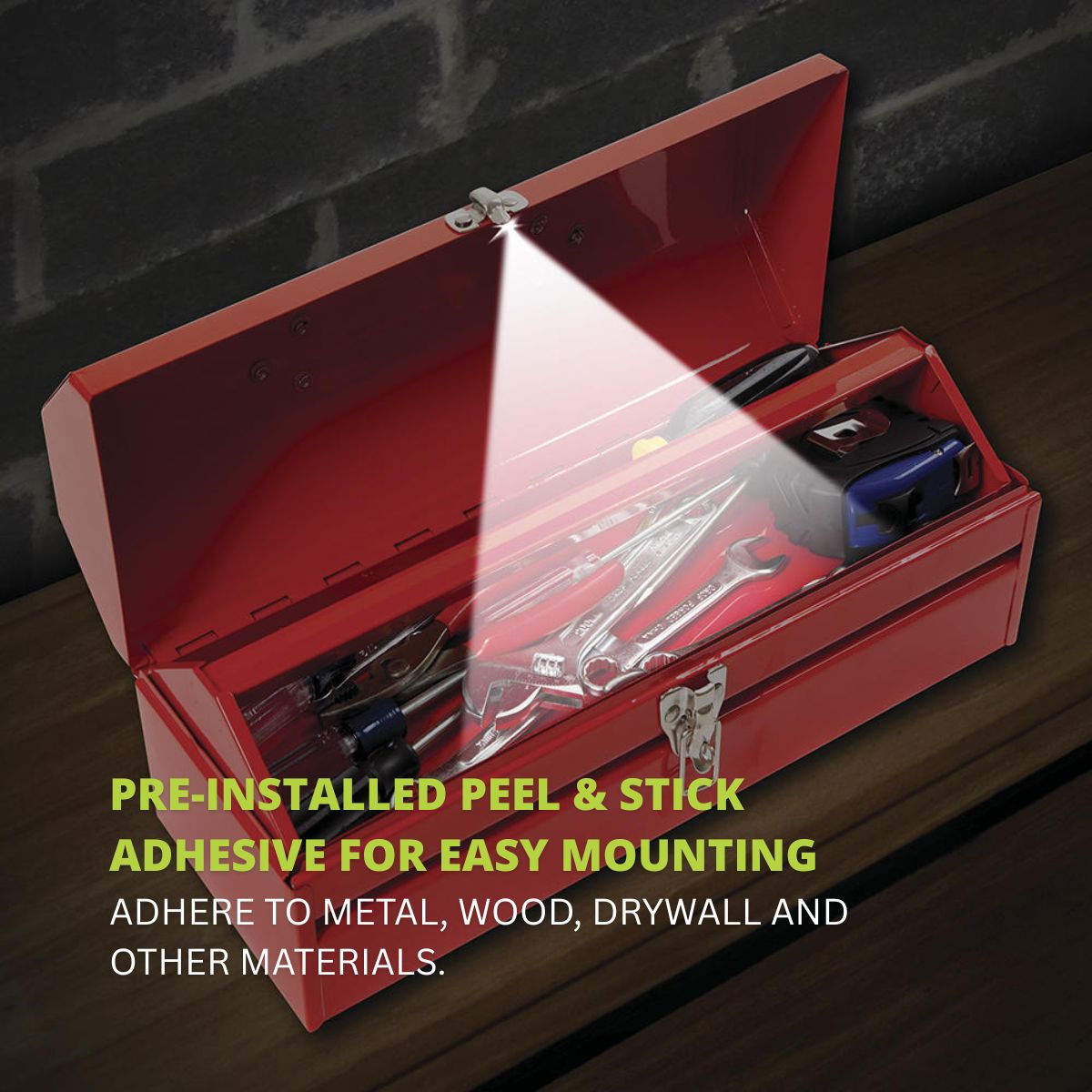 • Each lamp delivers 20 lumens of LED light—bright enough to light up small spaces like drawers, closets, or toolboxes