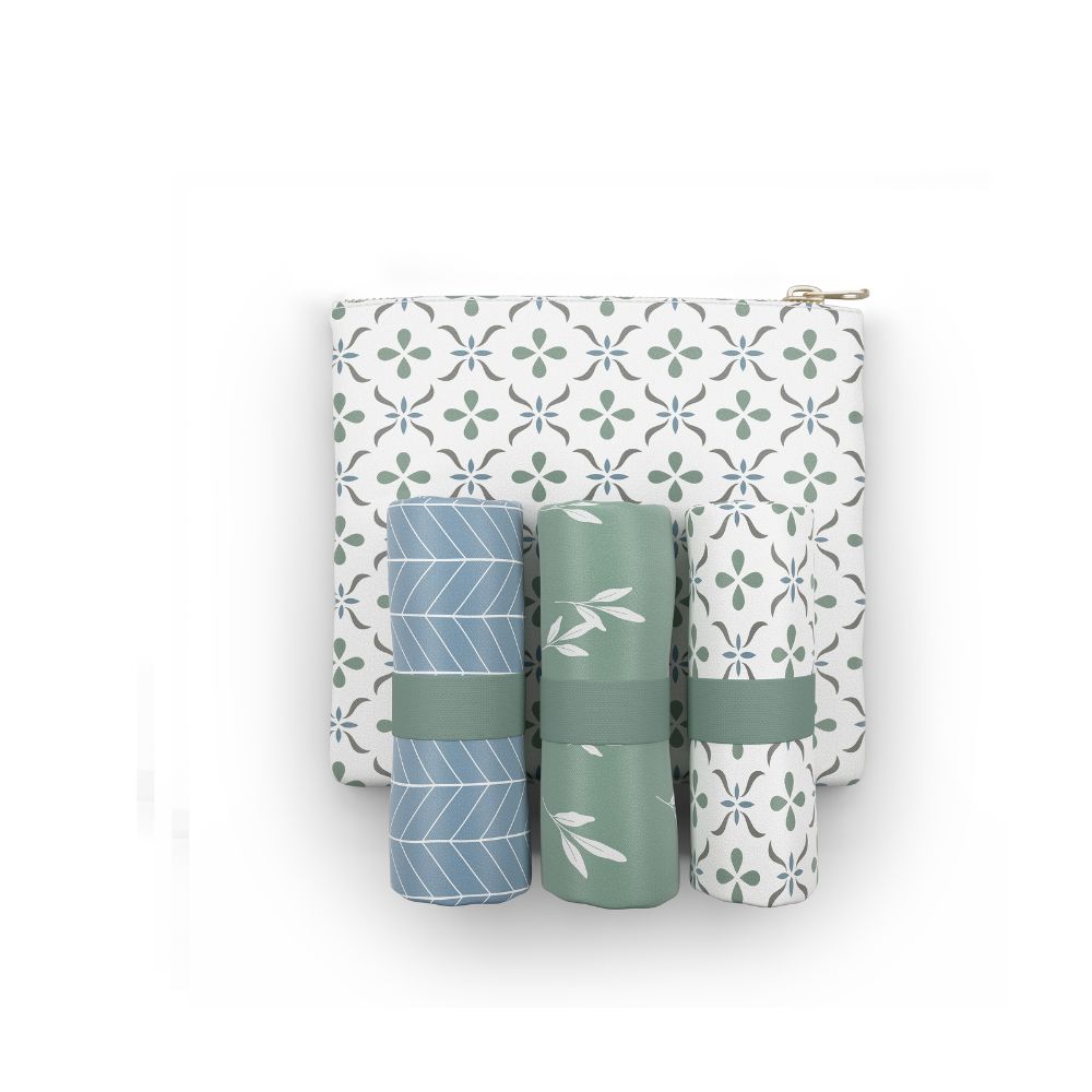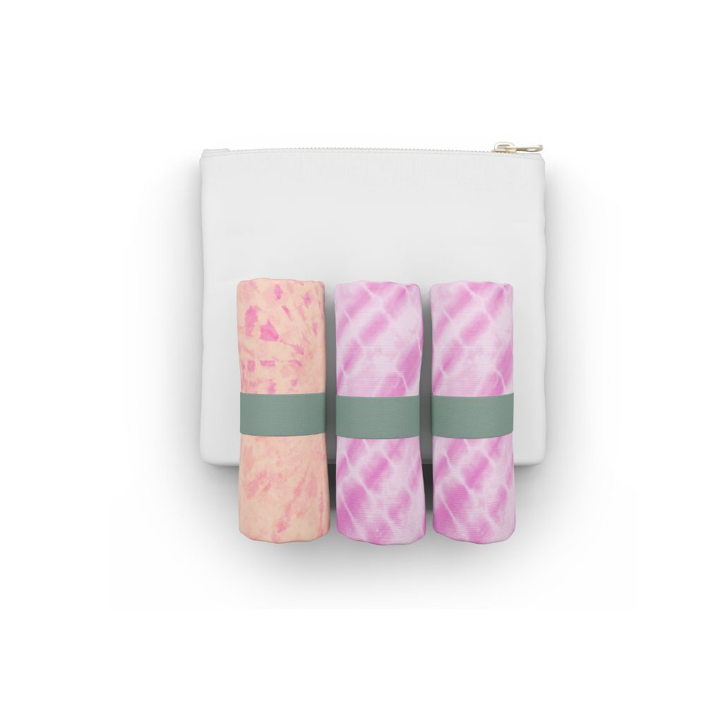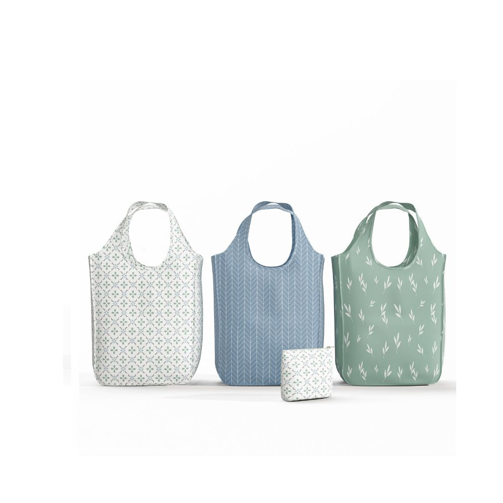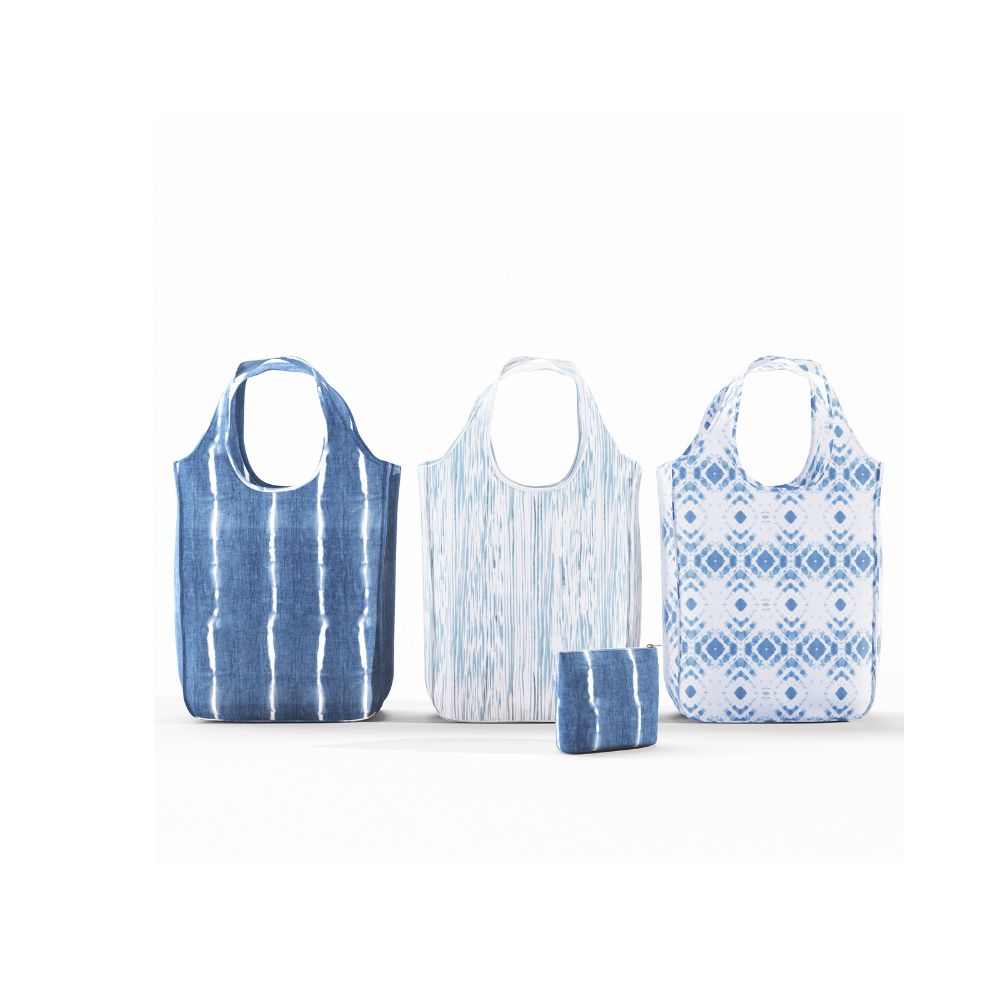 Sustainability meets modern style in the Reusable Shopping Totes. This set includes three medium totes—each in a signature print—ideal for errands, shopping days, or travel. Packed in a complementary zip pouch for effortless storage and elevated style on the go.