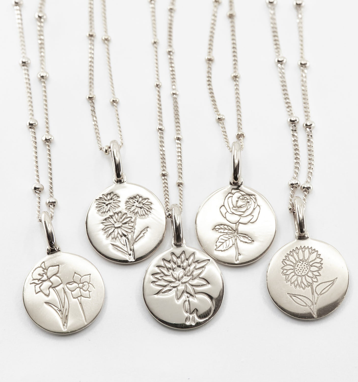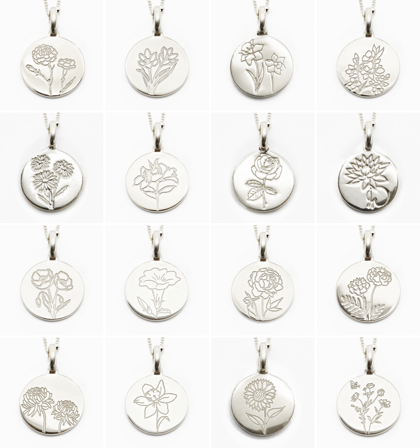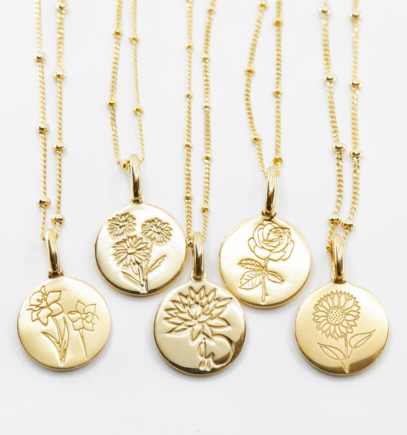 From January’s carnation to December’s narcissus, there’s a Birth Flower Necklace for every month—each with its own inspired meaning. Pick your favorite month, whether it's your birthday month, the warmest month, or your anniversary month.