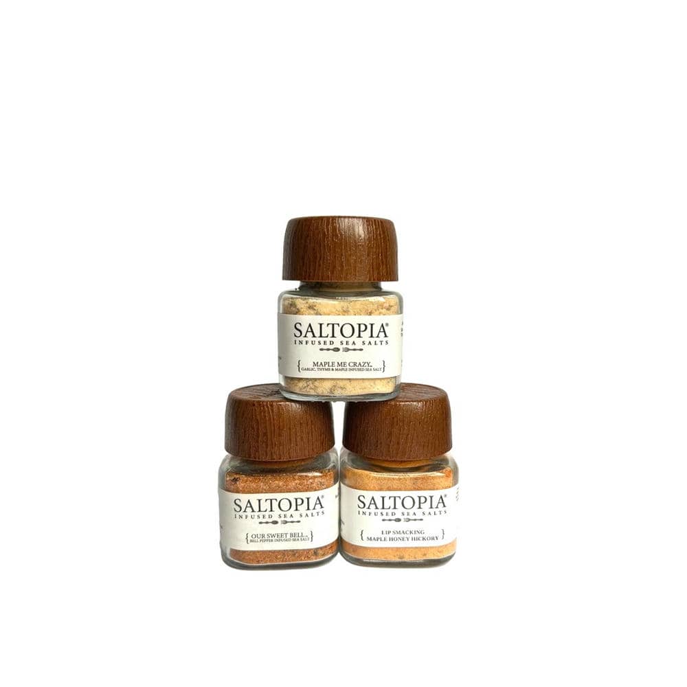 SALTOPIA Infused Sea Salts is an award-winning gourmet salt and seasonings small business. SALTOPIA's entire line of flavored salts, which has been created for all different levels of cooking, is easy to use and elevates every recipe with a simple pinch.