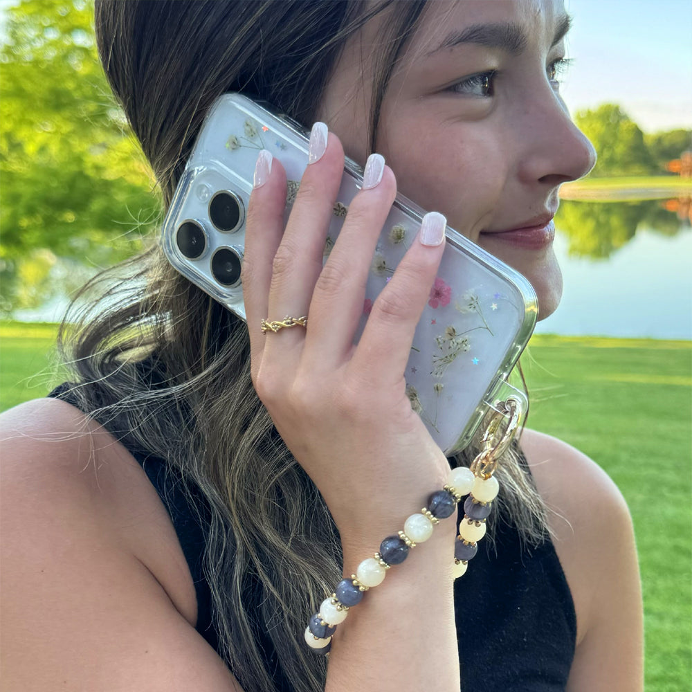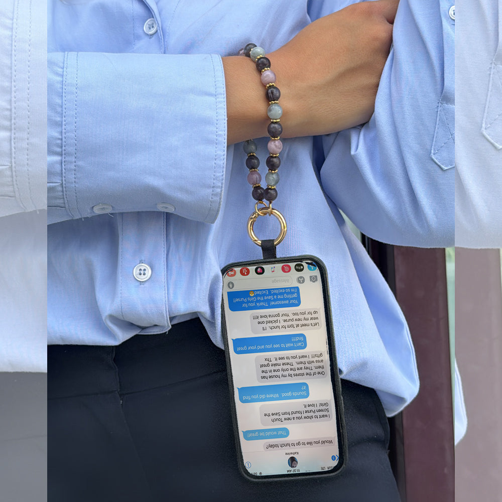 The Clip & Go Beaded Wristlet offers a sophisticated design for the modern individual. This accessory transforms your phone case into a chic wristlet, providing hands-free convenience without compromising on style. The intricate bead pattern adds a touch of refinement, making it suitable for both casual outings and formal events.