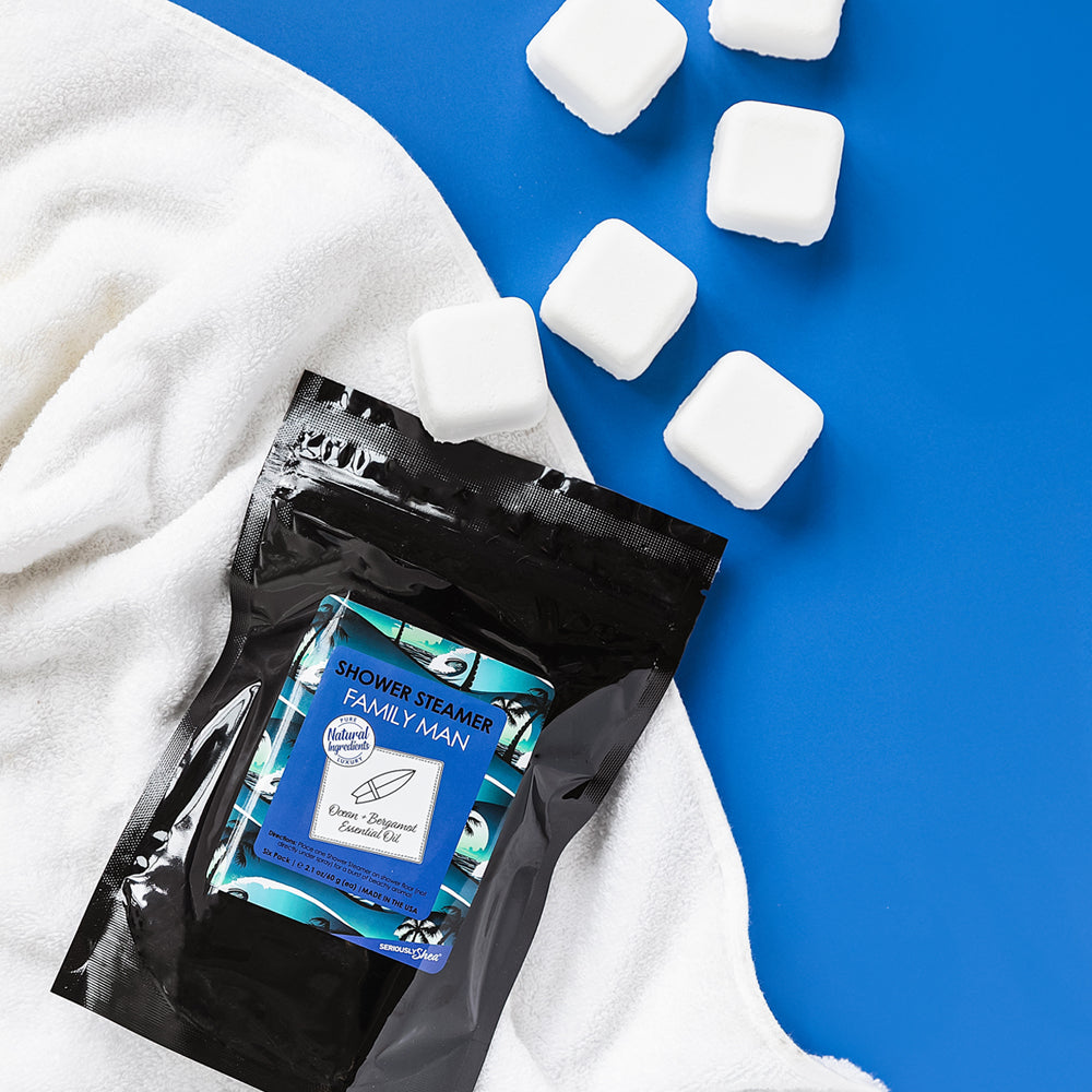 • Shower steamers can be left on the shower floor or placed on a soap dish when not in use to preserve it for your next shower (it’s normal for the steamer to dry up without the water running on it)