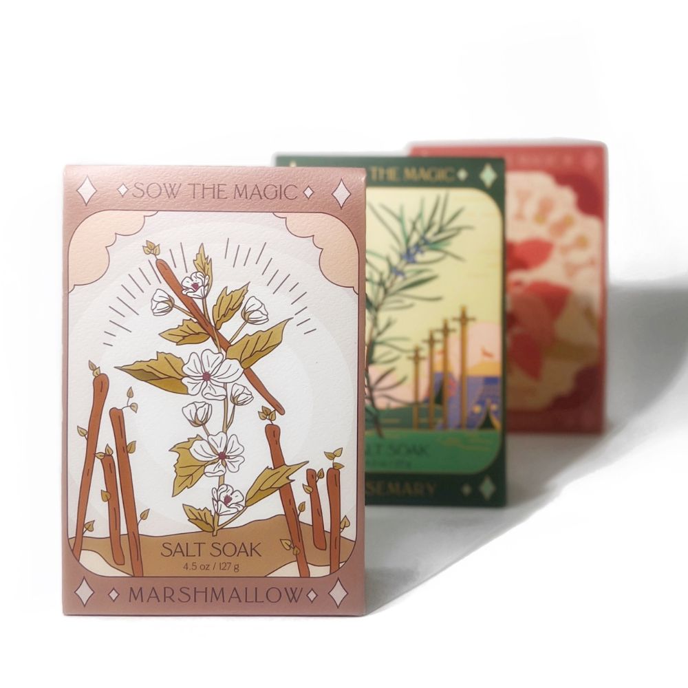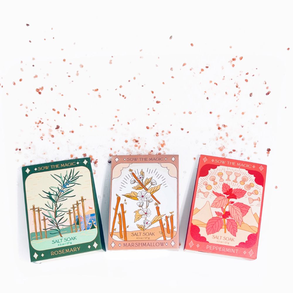 Relax and release the stress of the day with these softening tarot bath salt soaks. Each is designed with magic and hand-blended with mineral-rich epsom salt for an amazing bathing experience.