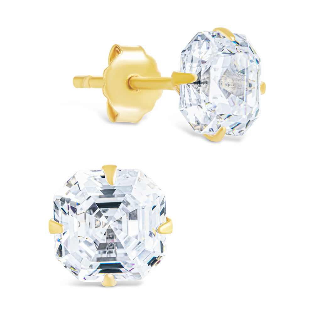 These studs are anything but basic. Featuring Hearts & Arrows, Asscher cut stones for incredible brilliance, they catch the light from every angle. Set in sleek, non-tarnishing sterling silver, they’re the ideal mix of classic and modern.
