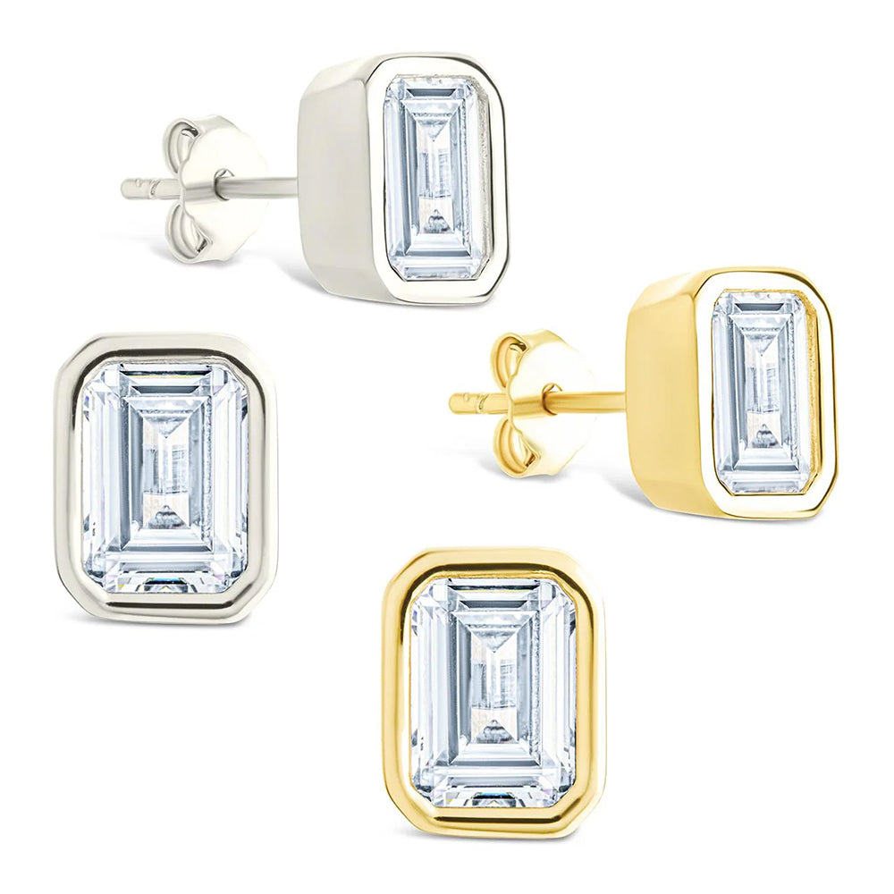 These studs are anything but basic. Featuring Hearts & Arrows, emerald cut stones for incredible brilliance, they catch the light from every angle. Set in sleek, non-tarnishing sterling silver, they’re the ideal mix of classic and modern.