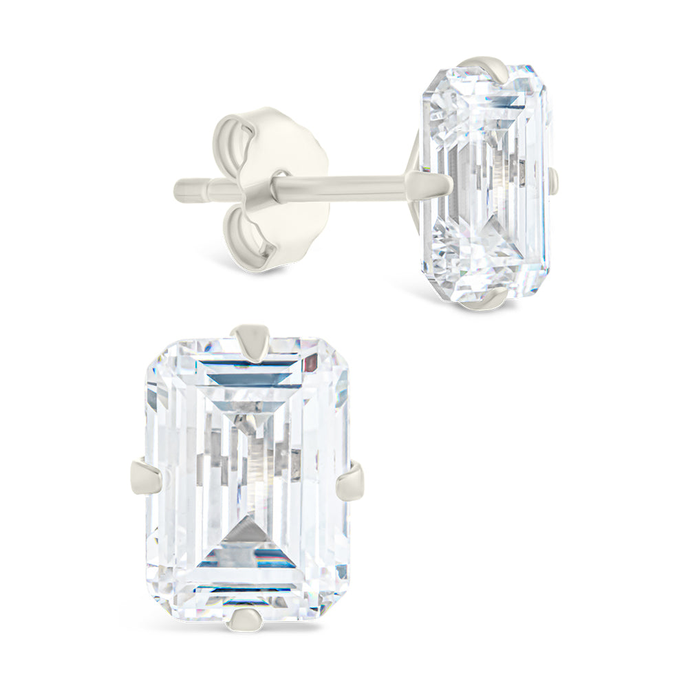 Sterling Silver Emerald Cut Prong Set Stud Earrings