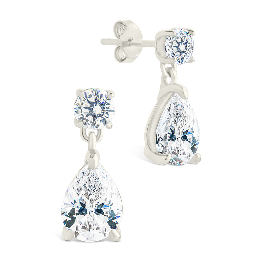 The Sterling Silver Imogen CZ Studs are dainty little treasures with a twist. Made with Hearts & Arrows CZs, they pair a classic round top with a pear-cut drop—an unexpectedly ideal duo you’re sure to keep coming back to for a lifetime.