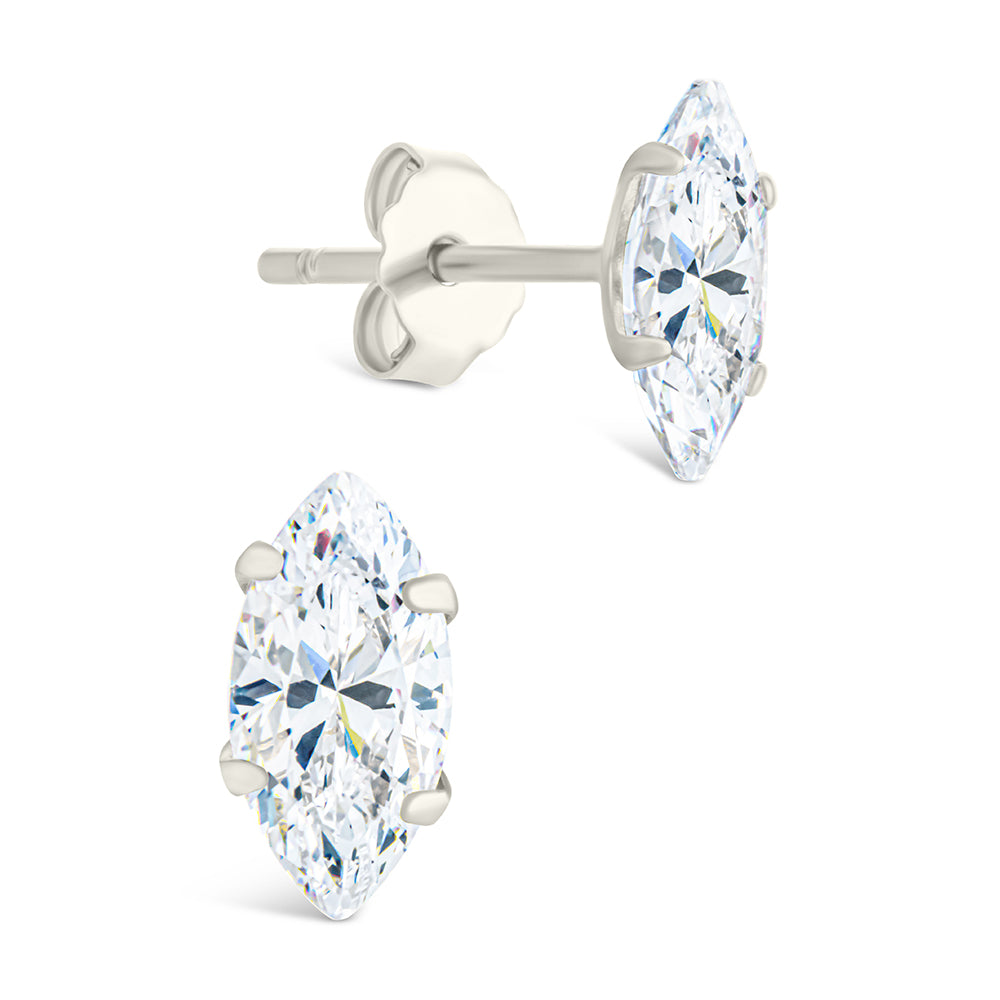 These studs are anything but basic. Featuring Hearts & Arrows, marquise cut stones for incredible brilliance, they catch the light from every angle. Set in sleek, non-tarnishing sterling silver, they’re the ideal mix of classic and modern.