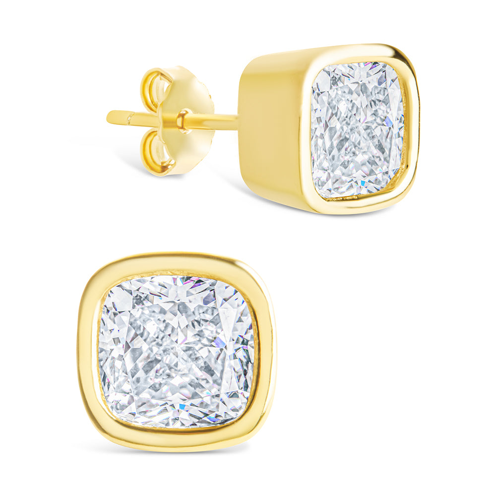 Sterling Silver Cushion Cut Bezel Set Stud Earrings