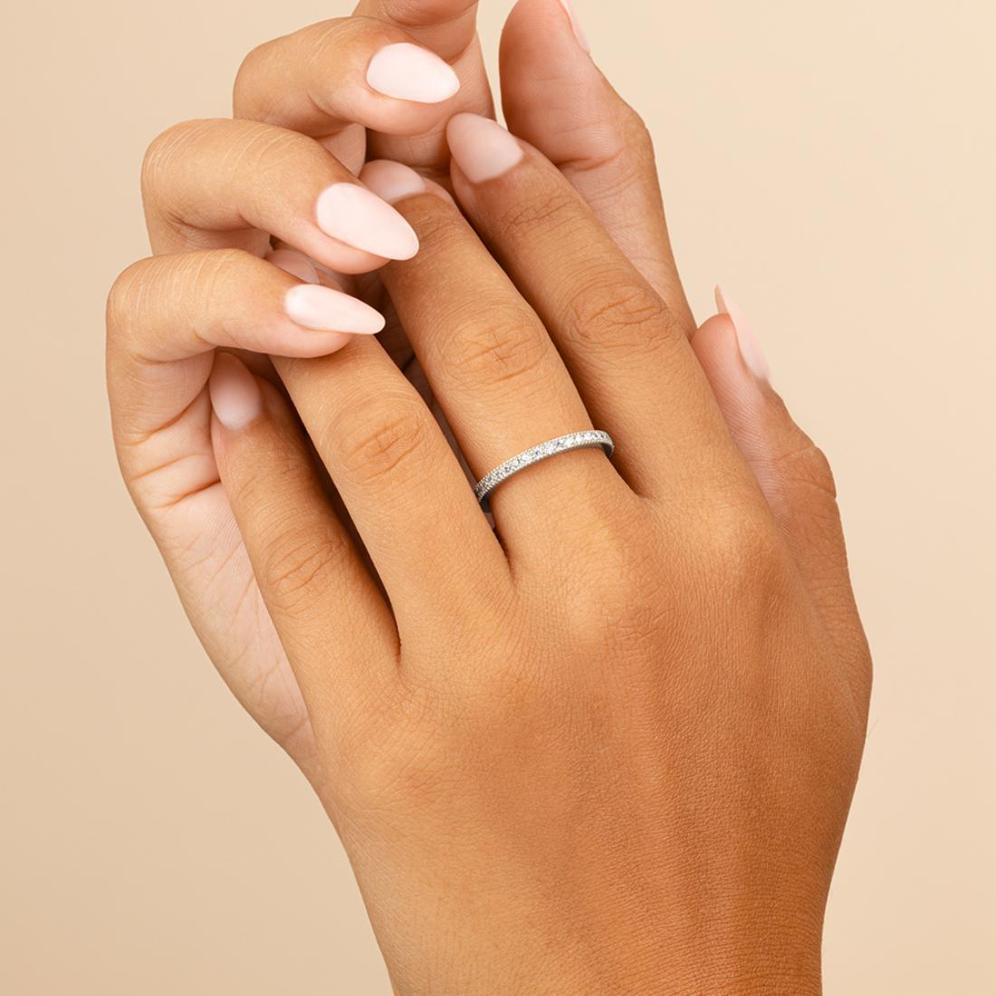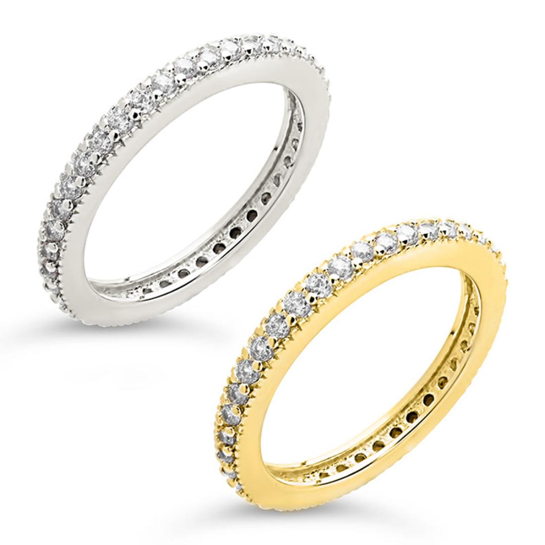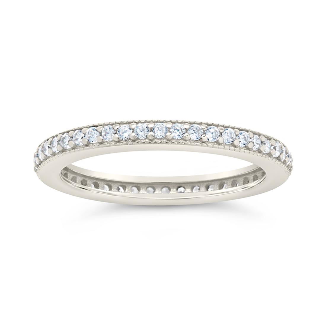 Talk about timeless! This elegant sterling silver engagement band is ideal for the woman who loves the classic diamond look. Bring red carpet style home without the red carpet price tag, and woo that special woman in your life with an unforgettable ring.