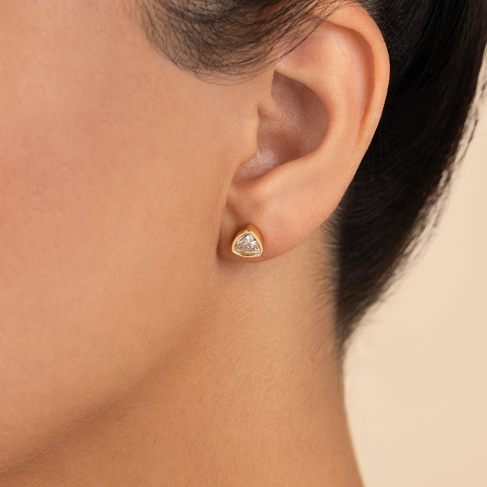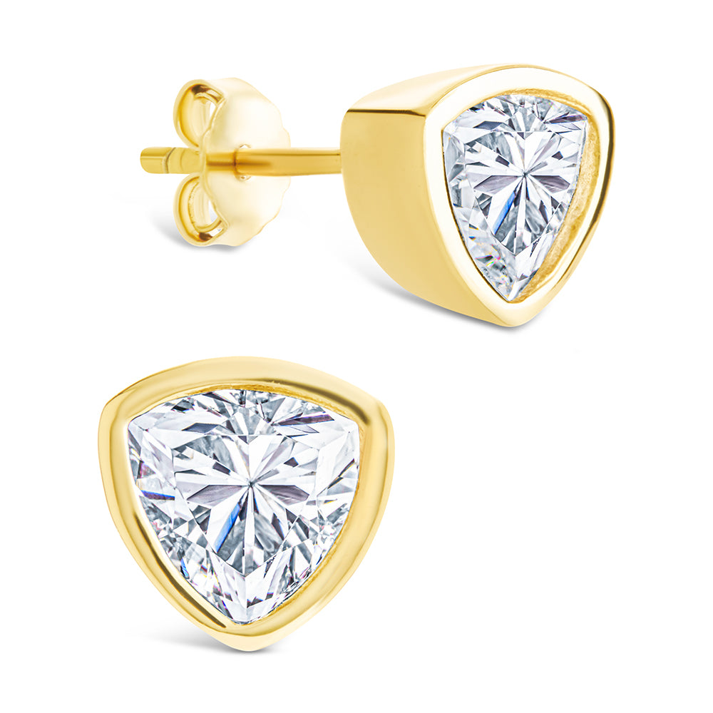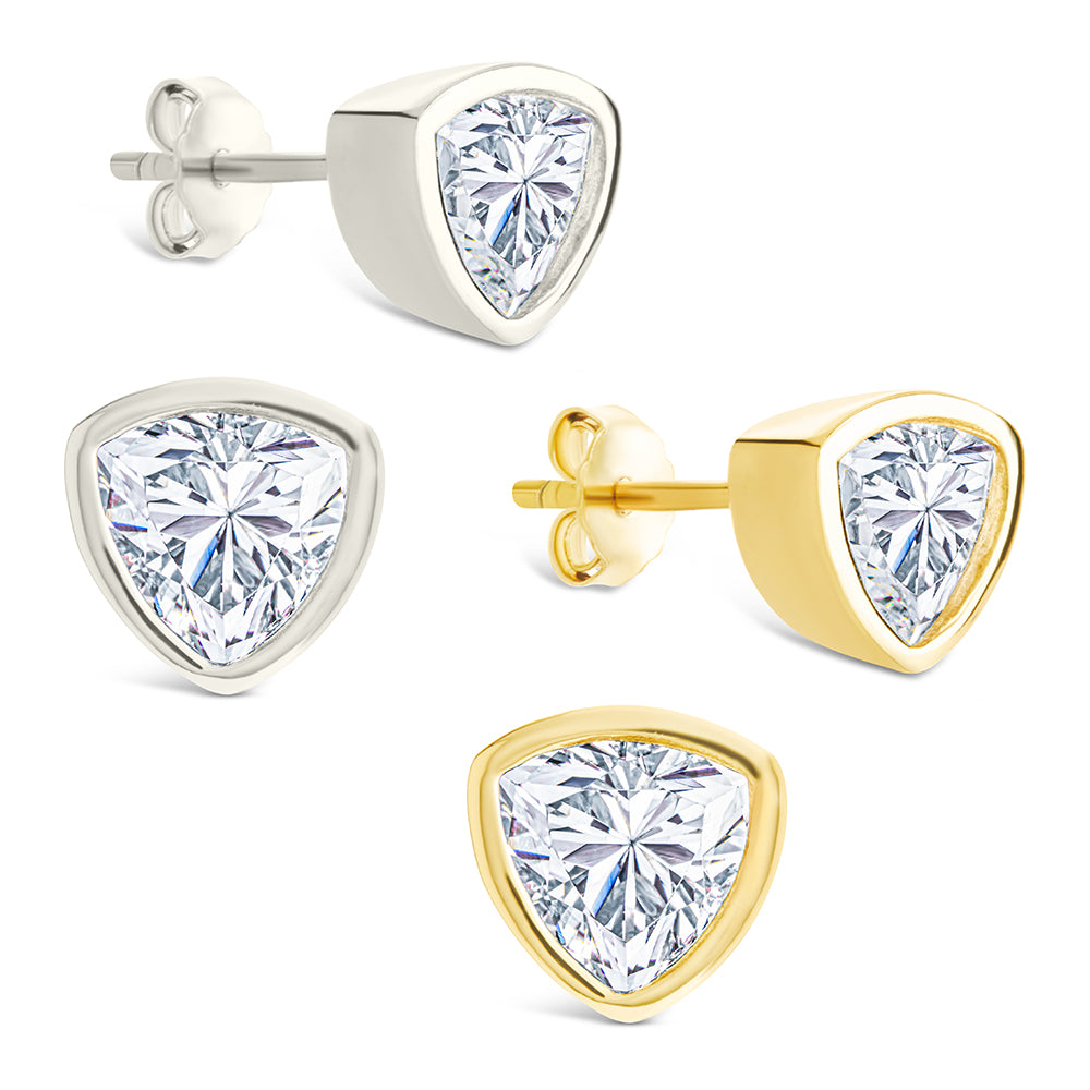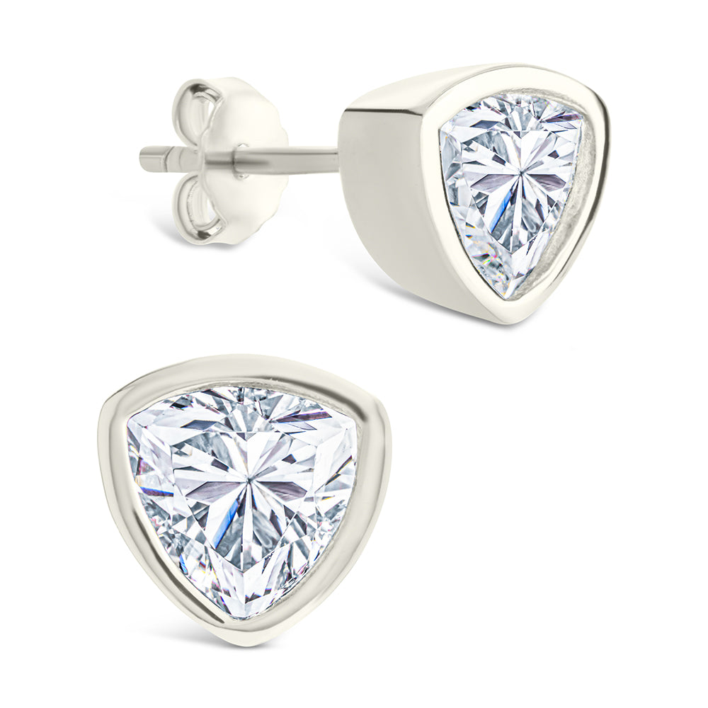 Sterling Silver Trillion Cut Bezel Set Stud Earrings