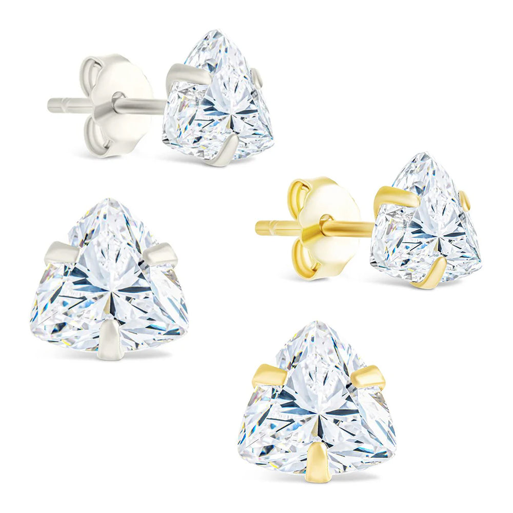 These studs are anything but basic. Featuring Hearts & Arrows, trillion cut stones for incredible brilliance, they catch the light from every angle. Set in sleek, non-tarnishing sterling silver, they’re the ideal mix of classic and modern.