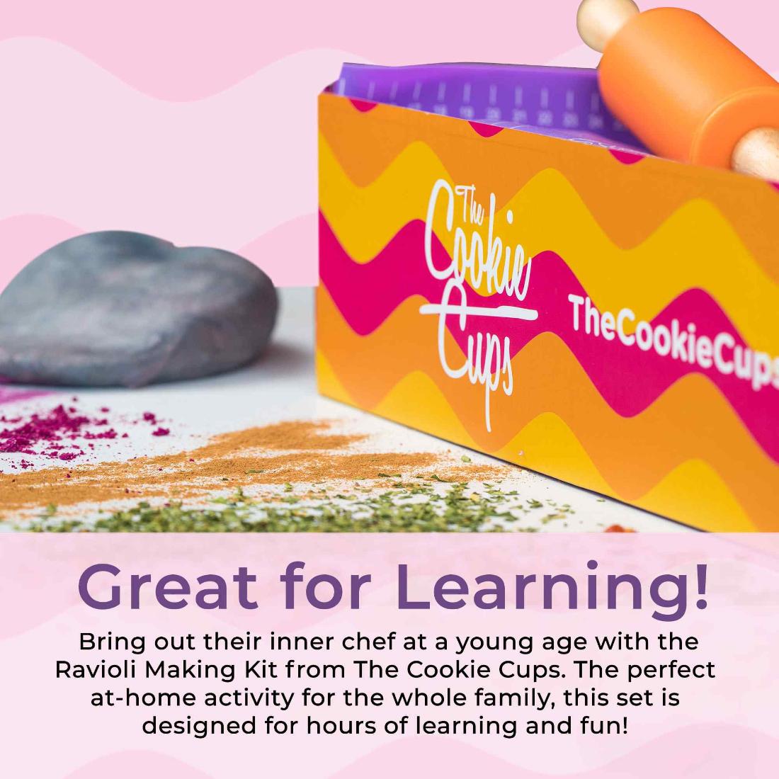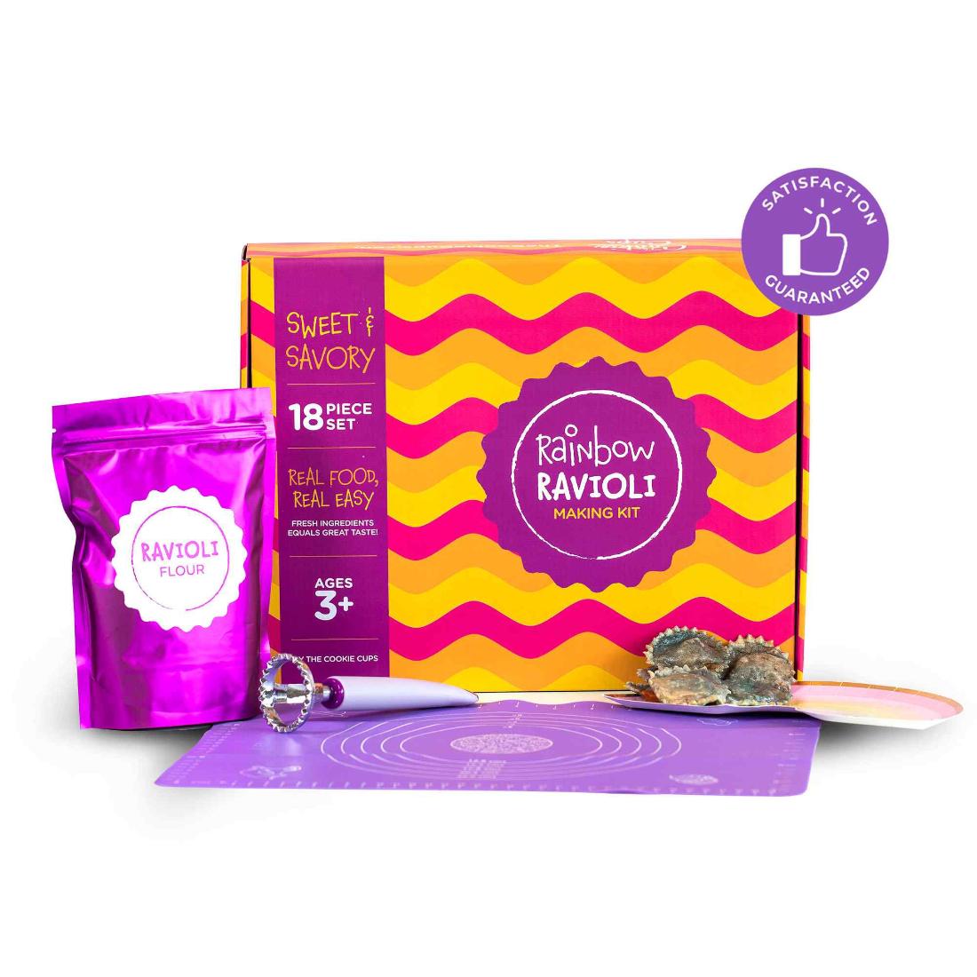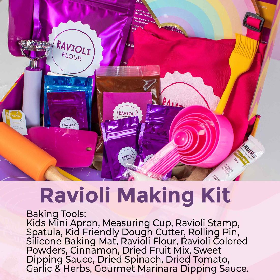 A full at-home cooking experience for kids! This complete kit is designed for you to make three dozen ravioli pieces from scratch. With both sweet and savory options, you’re sure to love these recipes.