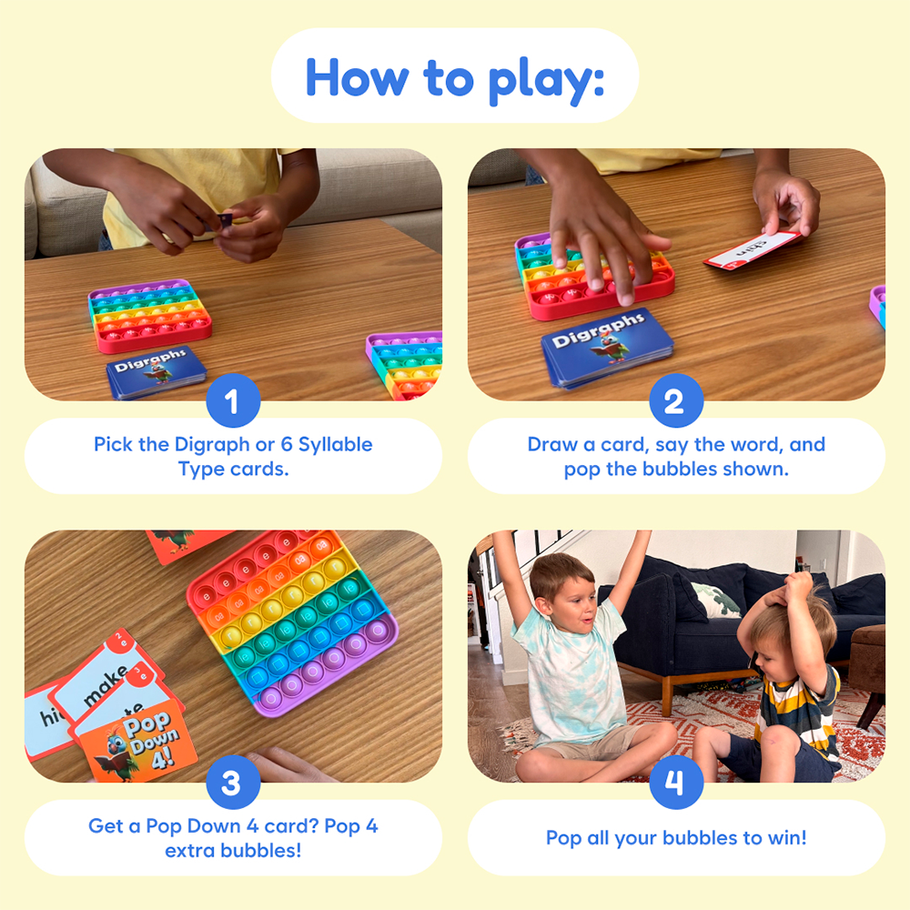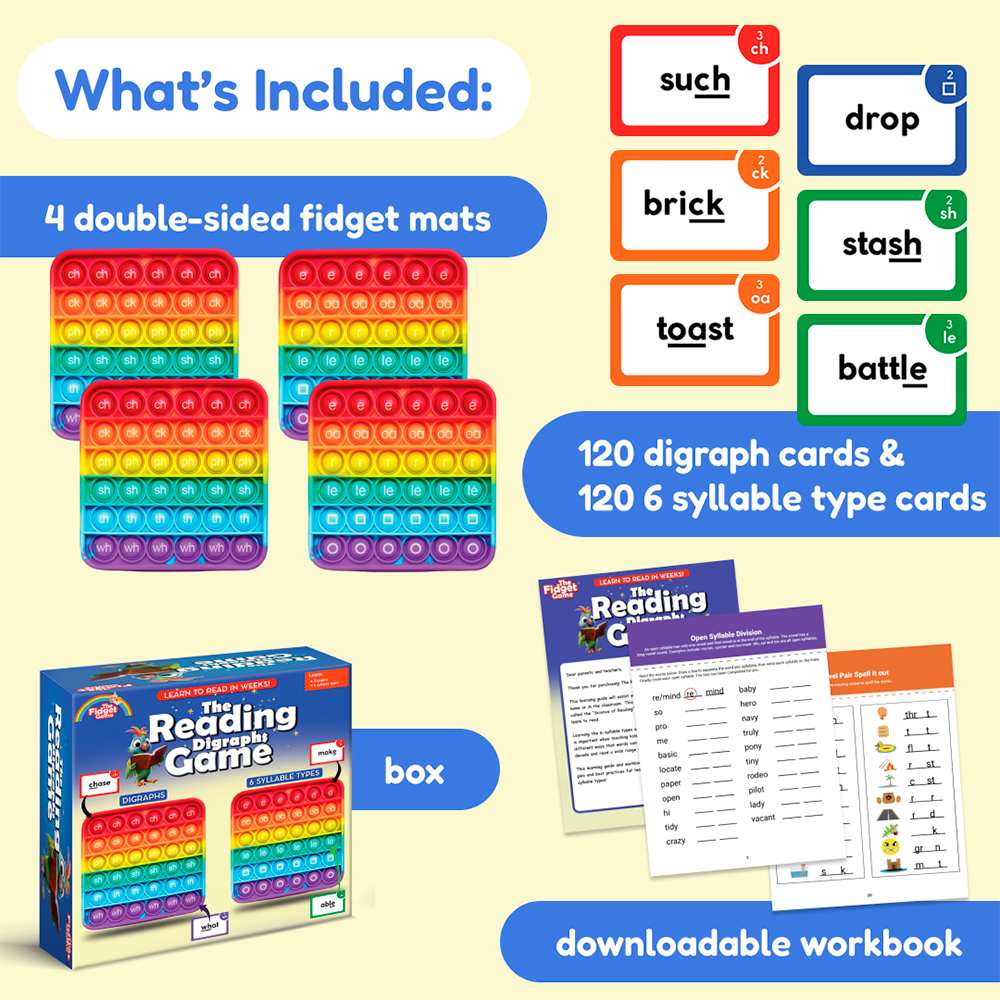 The Reading Digraphs Game helps young learners move beyond simple words into more complex reading skills. With 240 cards covering digraphs and syllable types, this interactive game strengthens fluency, comprehension, and reading confidence. Designed for Grades 1–3, it provides a hands-on way to practice essential literacy skills aligned with the Science of Reading.